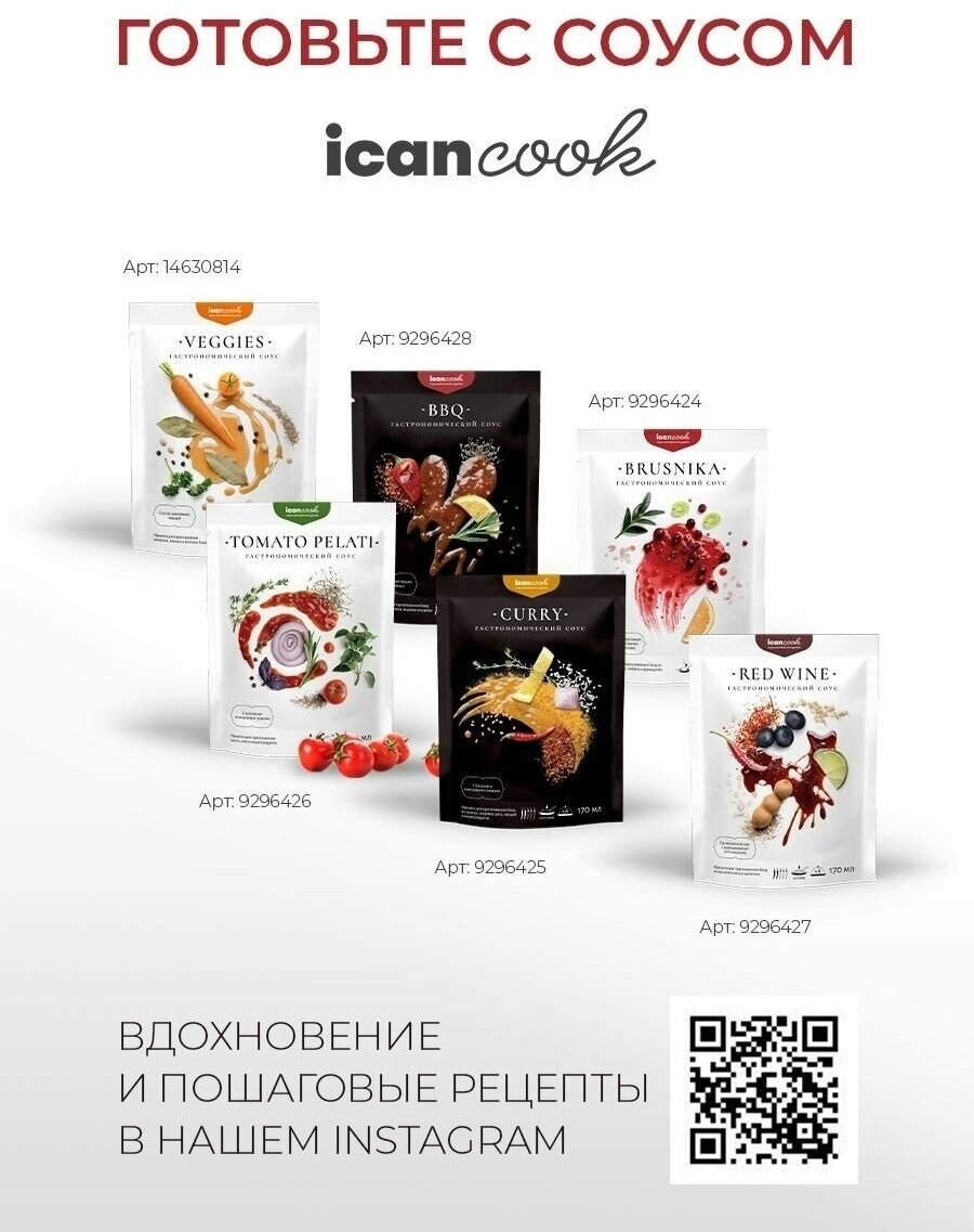 Мы помогаем разнообразить Ваши блюда и верим, что готовить может каждый. . Используя привычные ингредиенты, попробуйте создать нечто уникальное, добавив соусы icancook в уже готовое блюдо.