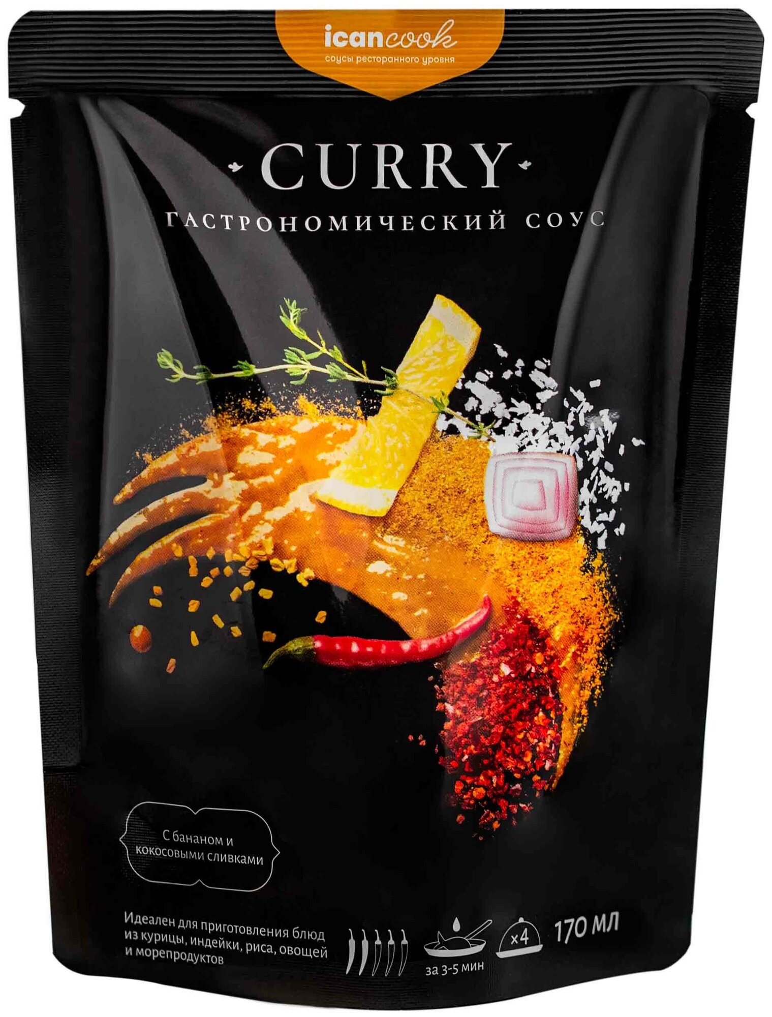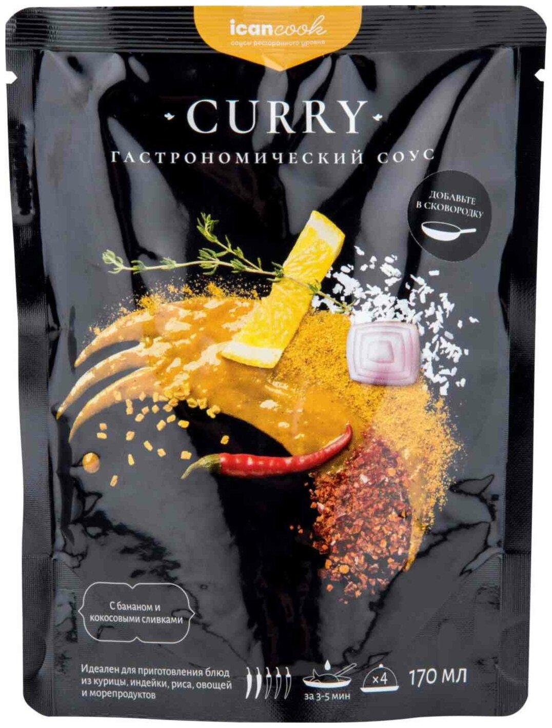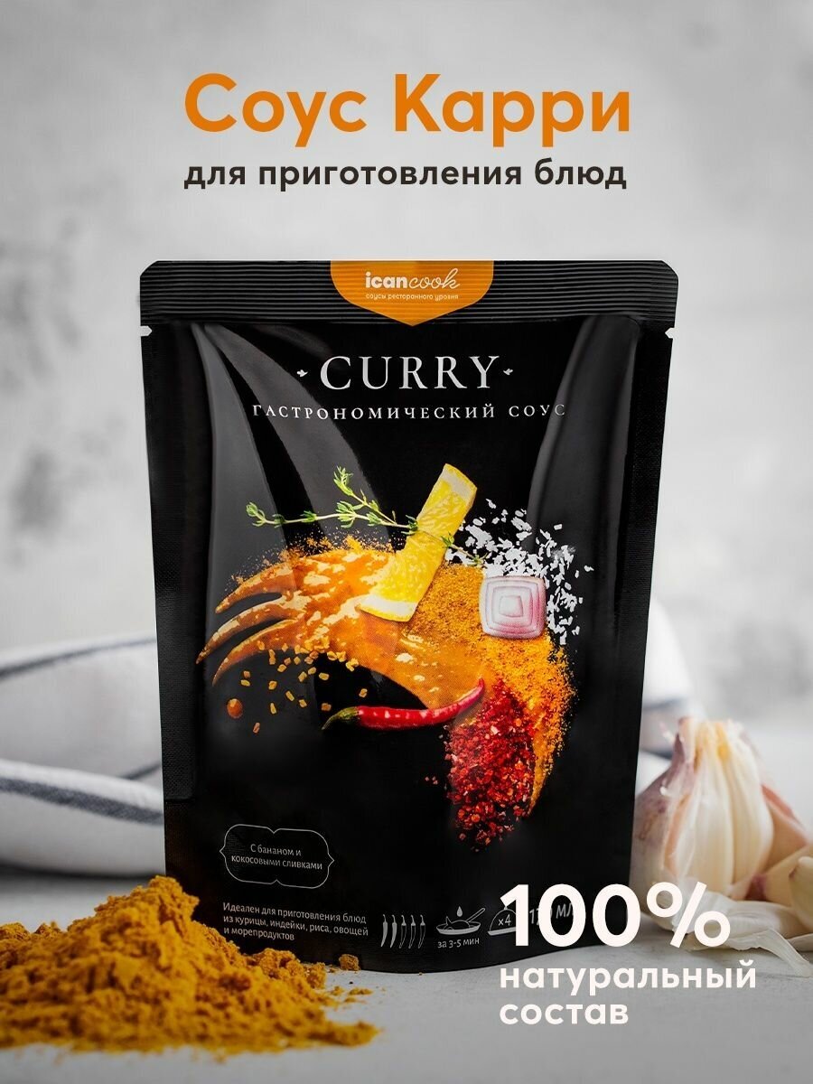 Сервис сравнения цен СкидкаГИД предлагает сравнить цены на товар «Cоус icancook Карри с бананом и кокосовыми сливками 170мл»