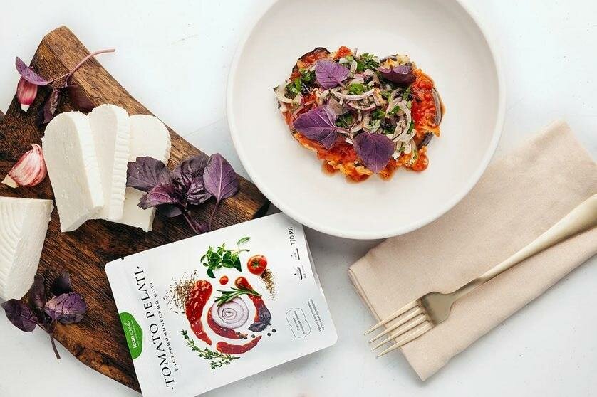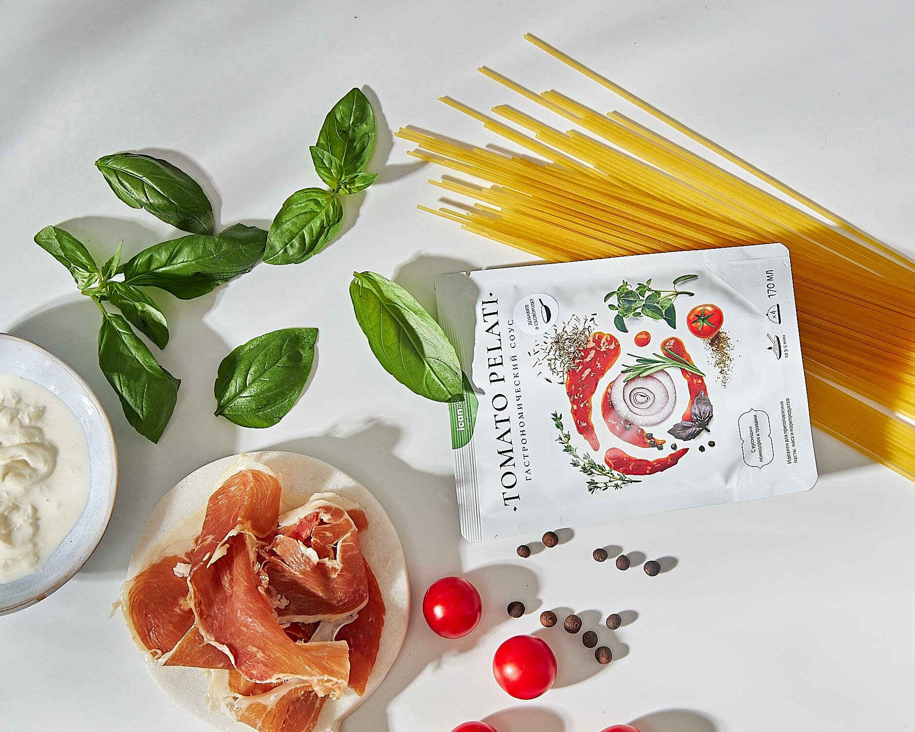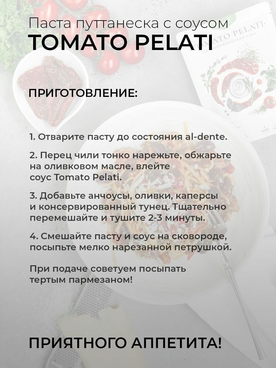 Состав: томаты пелати, томаты протертые, вода питьевая, лук, сок овощной концентрированный (сок из моркови, сок из лука, сок из томатов), сахар, уксус яблочный, соль пищевая, крахмал гороховый, чеснок, петрушка, сельдерей, базилик, майоран, орегано, розмарин, тимьян, перец черный, экстракт сахарного тростника