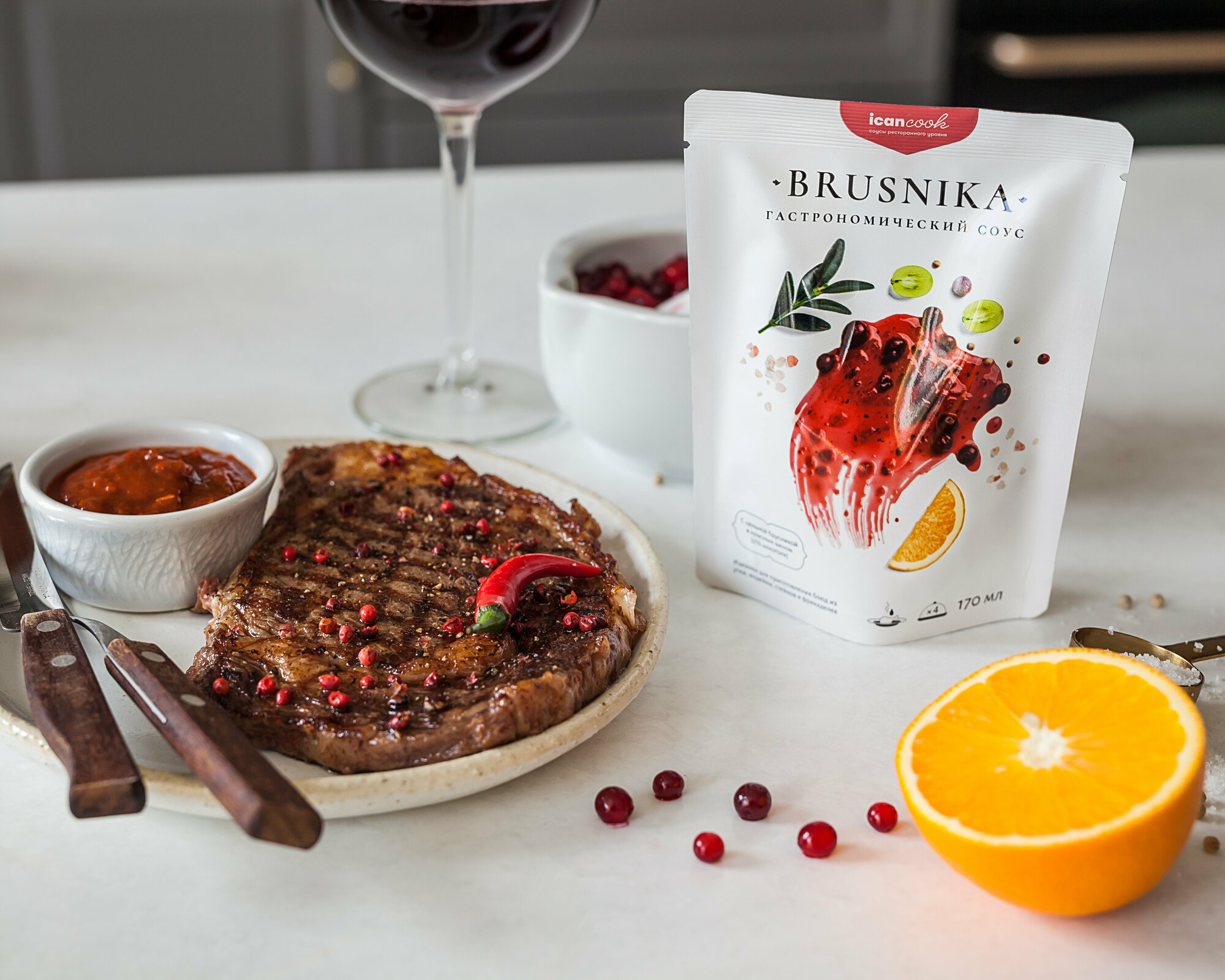 Брусничный соус от icancook идеально подходит к мясу, десертам и для заправки салатов. Один соус - много разных блюд.