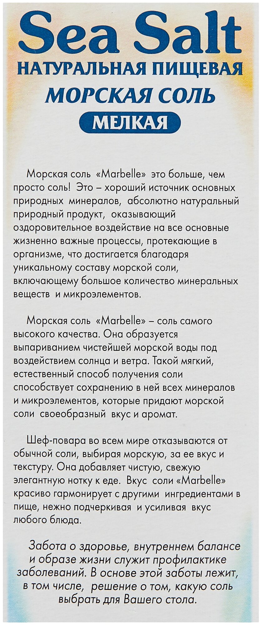 Соль Marbelle Морская мелкая 750г Хлебзернопродукт