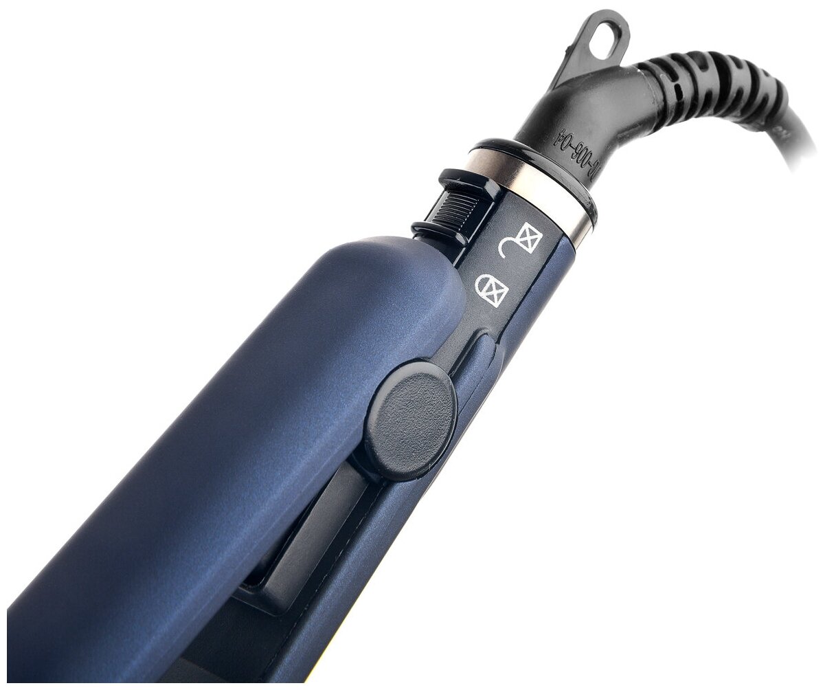Максимальная температура 220°C. Нагревательные пластины 22х100 мм. с керамическим покрытием. PTC Heating – быстрый нагрев и стабилизация температуры для сохранения здоровья и красоты волос. Кнопка включения ON/OFF. Блокировка ручки. Вращение шнура 360°.