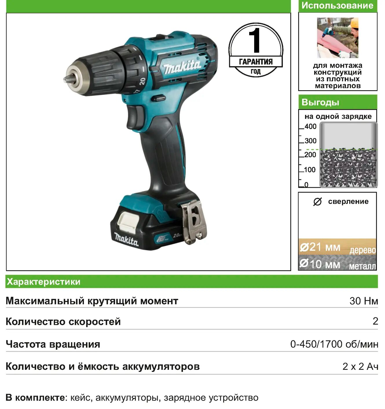 Обзор аккумуляторной дрели-шуруповерта Makita DF333D