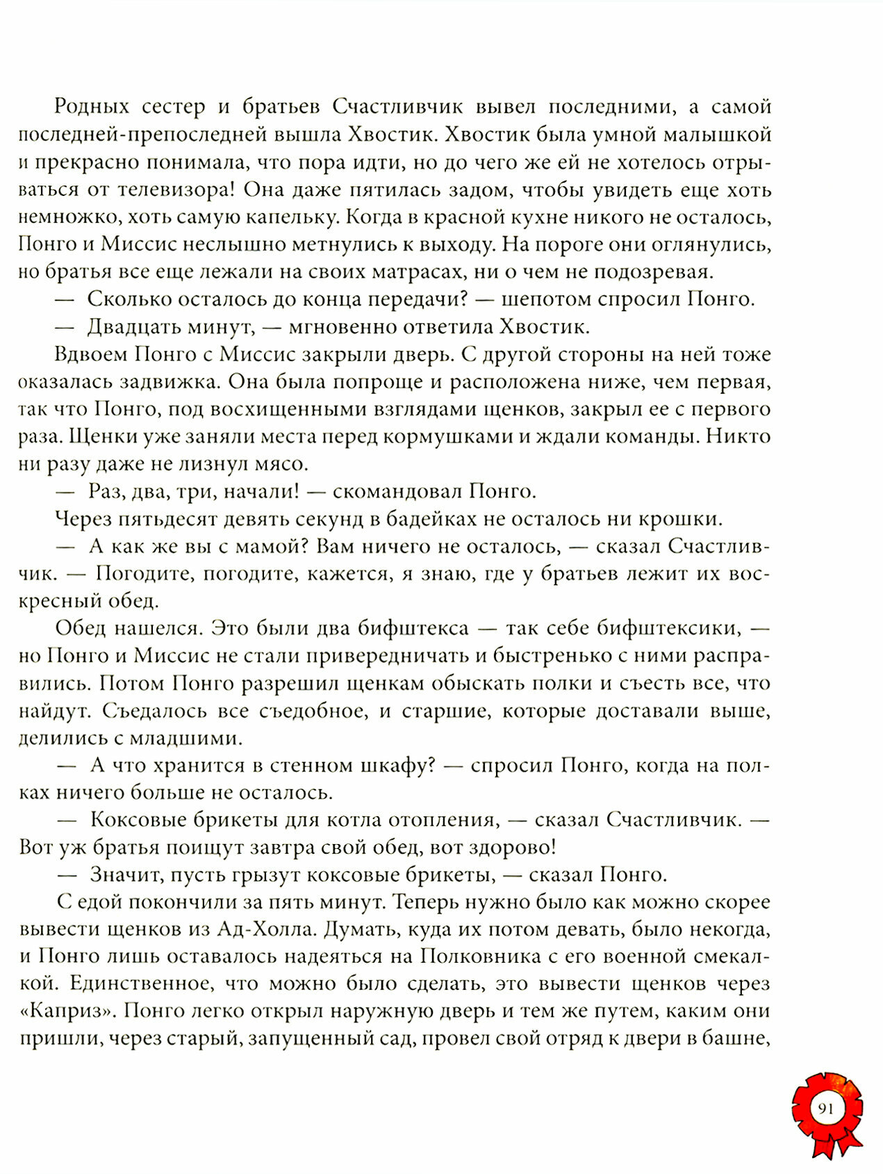 Книга - детства. История начинается сразу, с совместного проживание догов и их хозяев. Бумага хорошего качества, не белёсая. Как медик - могу сказать, что это очень важно. Белоснежная бумага вызывает сильное напряжение зрения. Именно поэтому я покупаю книги этого издательства. Иллюстрации красивые, сюжет прекрасный. Нет жестокости и драк, как в мультике.