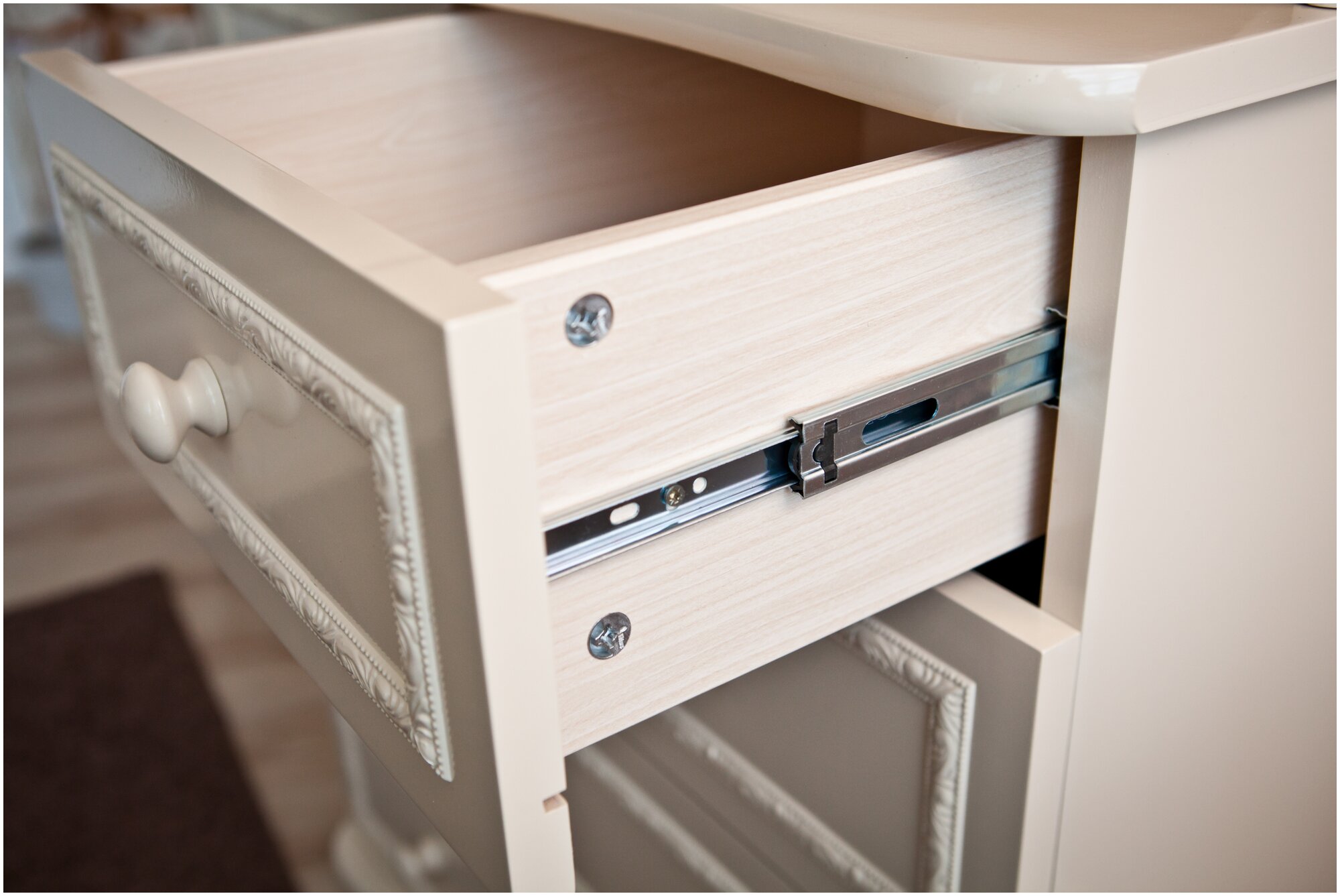Детский комод С 585 П Красная Звезда (Можга) с откидной доской для пеленания отлично впишется в комнату в стиле барокко или классическом. Фасады всех пяти ящиков по периметру украшены планками багета, что придает комоду изысканный вид. Этот комод будет отлично сочетаться к кроватками-маятниками Леонардо С770 и Артем С579, отделанными в том же стиле.