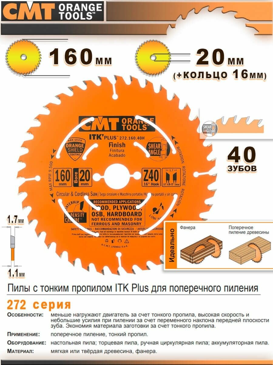 Пильный диск CMT Ф160х20мм 40зуб. (272.160.40h)
