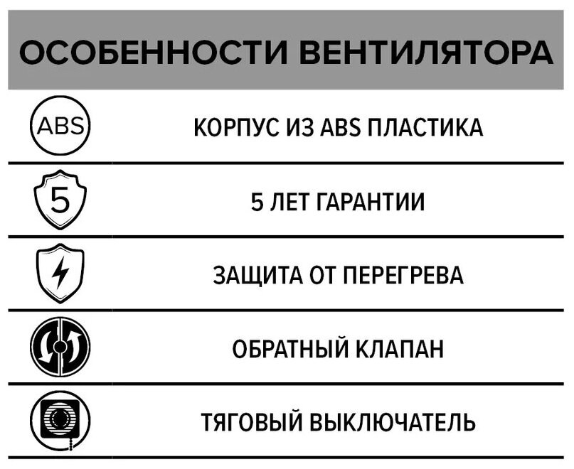 Вентилятор осевой вытяжной ERA (Эра) QUADRO 4C-02 с обратным клапаном и шнуровым выключателем для ручного включения и выключения устройства. Предназначен для удаления неприятных запахов и лишней влаги из туалетных, ванных комнат, а также из других небольших помещений, нуждающихся в вентиляции. Подключается специалистами к однофазной сети электричества.