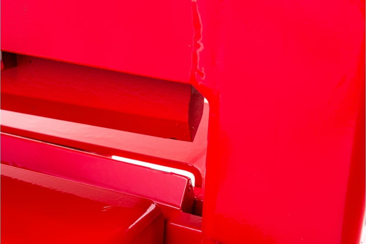 Ручной надёжный инструмент для колки тротуарной плитки, брусчатки, кирпича, тонких гранитных плит. Применяется непосредственно в местах укладки и работы с материалом. Колка производится путем упора на рукоять длиной 78 см. За счет такого размера снижается физическое напряжение на руки и спину работника в процессе колки. Упор дает устойчивость и гарантирует ровный разрез плитки под необходимым углом.Гильотина имеет механизм тонкой регулировки толщины материала, который необходимо расколоть. Максимальный предел – 9 см. Перед колкой нож необходимо разместить по высоте строго над плиткой, чтобы получить гарантированно ровный разрез под необходимым углом. Лезвия ножа изготовлены из легированной стали, а сама гильотина имеет стойкую порошковую окраску, что защищает ее от ржавчины и коррозии. Инструмент мобилен. Несмотря на вес 38,8 килограмм, легко перемещается по площадке за счет пары резиновых колес.