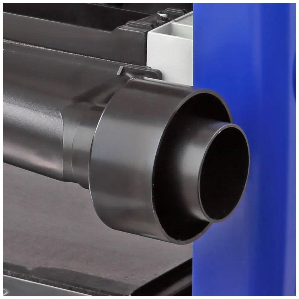 Для отвода отходов резания предусмотрен кожух, который имеет патрубок отвода стружки 53 мм. Его направление при установке может быть как в правую, так и в левую сторону. На патрубок надевается универсальный адаптер с диаметрами под подключение пылесоса на 63 и 102 мм.