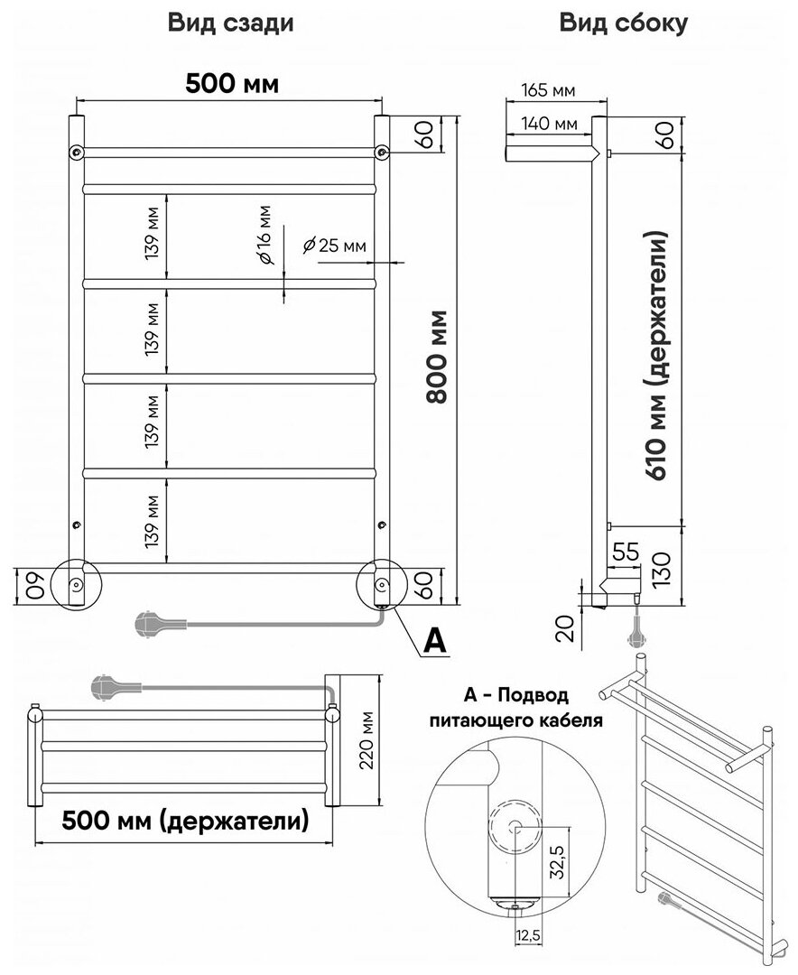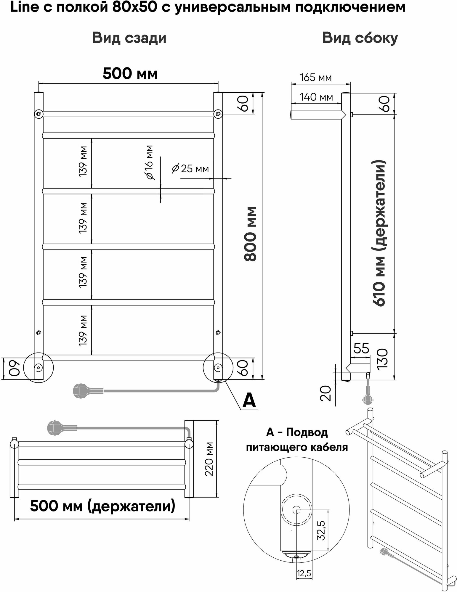 Полотенцесушитель электрический INDIGO Line с полкой в размере 800х500 (ВхШ) выбирают за его вид – лесенки и универсальность. Модель оснащена кнопкой включения внизу стойки. Универсальность изделия предусматривает подключение через прямой провод, который переставляется на нужную вам сторону или скрытое подключение без покупки дополнительного переходника. Длина прямого провода 1,2 метра. Изделие имеет полку для большего комфорта и окрашено порошковой краской по специальной технологии. Полотенцесушитель относится к энергоэффективным изделиям, потребляемая мощность в данном размере 90 Вт. Специальная технология нагревательного кабеля защищает полотенцесушитель от перегрева что влияет на длительные сроки службы. В комплектации идут 4 телескопических держателя, комплект монтажа и гарантийный паспорт. Полотенцесушитель INDIGO Line с полкой застрахован и имеет гарантию 3 года. Выбирая INDIGO вы получаете надежный продукт из нержавеющей стали с гарантией качества от Российского производителя