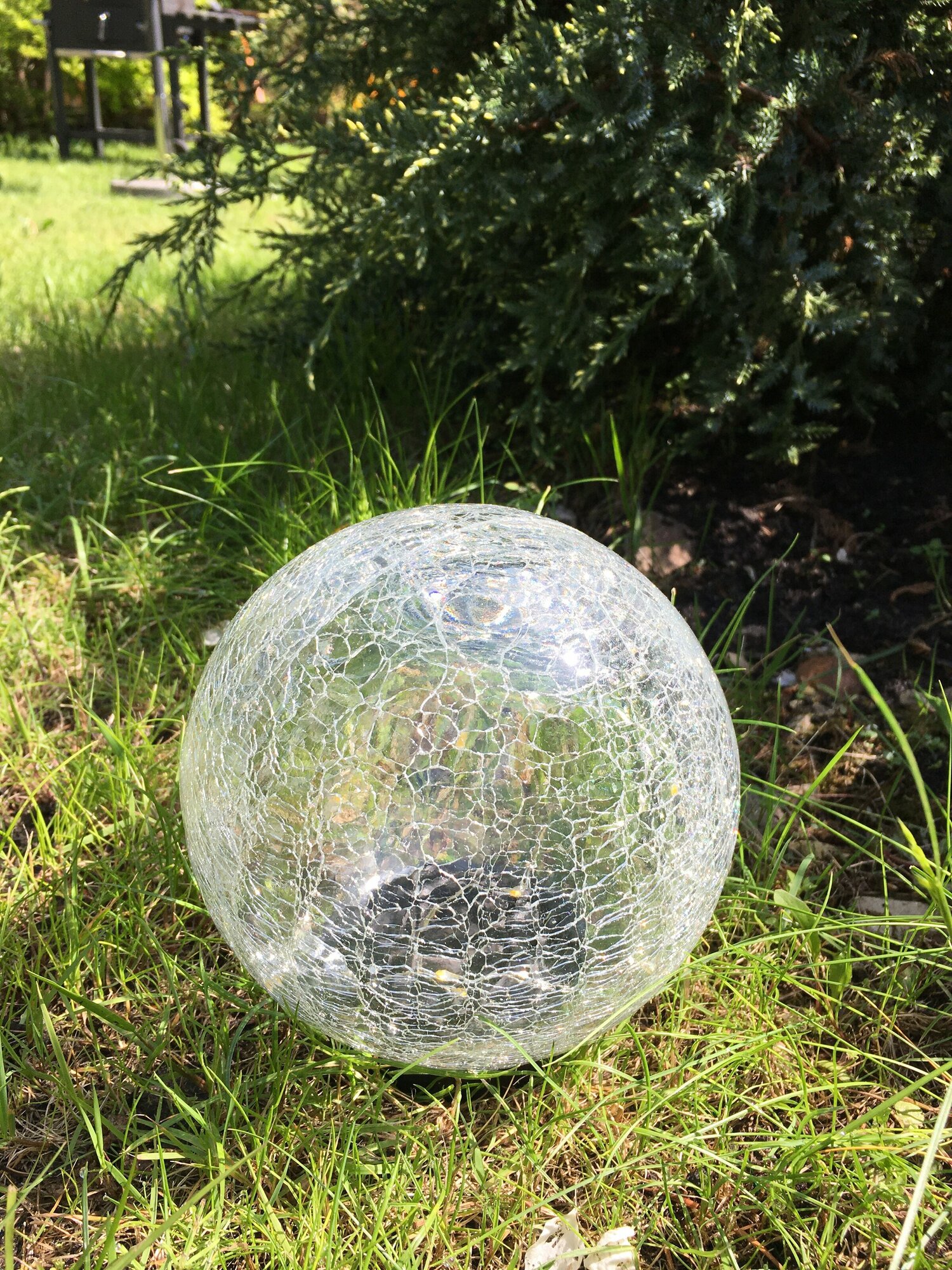 Светильник садовый ERASF012-24 Шар на солнечной батарее 15 LED 15см Эра Б0044232Волшебный садовый светильник шар ERASF012-24 станет эффектным источником света на Вашей загородной территории. Небольшие размеры позволят Вам спрятать светильник в саду, украсить прудик или бассейн, необычно подсветить цветы, аллею или вход в дом. Фигурка из пластика диаметром 15 см с легкостью устанавливается в землю. LED светильник функционирует на солнечной батарее. Данный тип получения энергии является самым экологичным, энергоемким, а также бесшумным. Питание происходит во включенном режиме, днем. С наступлением ночи шар загорается теплым белым светом. Создается ощущение, что внутри мелькает множество светлячков. Атмосфера волшебства окутывает территорию. Солнечная батарея предусматривает 8 часов непрерывной работы. Высокая степень пыле и влагозащиты, а также ударопрочность позволяют оставлять светильник в саду в непогоду. Обращаем Ваше внимание, что перед использованием фигурки её необходимо включить и зарядить. Светильник заряжается в течение всего светового дня. Садово-парковый светодиодный светильник шар от компании ЭРА чудесный вариант для украшения Вашей территории. Данный уличный декоративный светильник от торговой марки ЭРА применялся для преображения дачного участка в телевизионной передаче Первого канала На дачу!