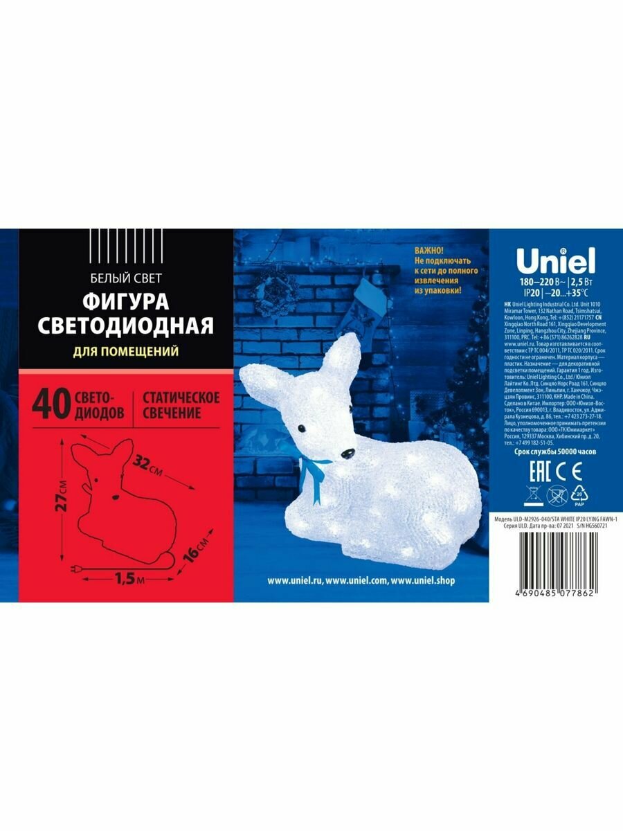 На сегодняшний день товар «Фигура новогодняя Uniel Uld-m2926-040/sta white ip20 lying fawn-1 neon (11031)» можно купить с кешбеком в 1 магазине: Яндекс.Маркет