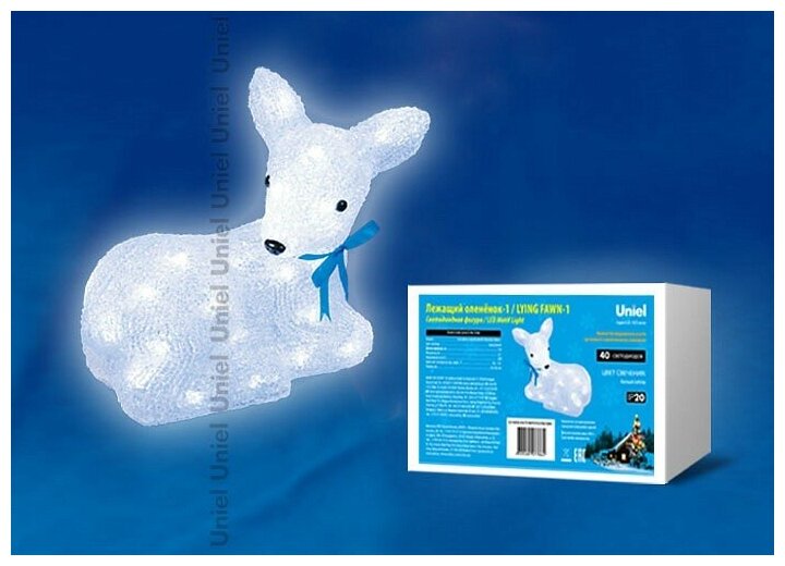 Фигура новогодняя Uniel Uld-m2926-040/sta white ip20 lying fawn-1 neon (11031)
