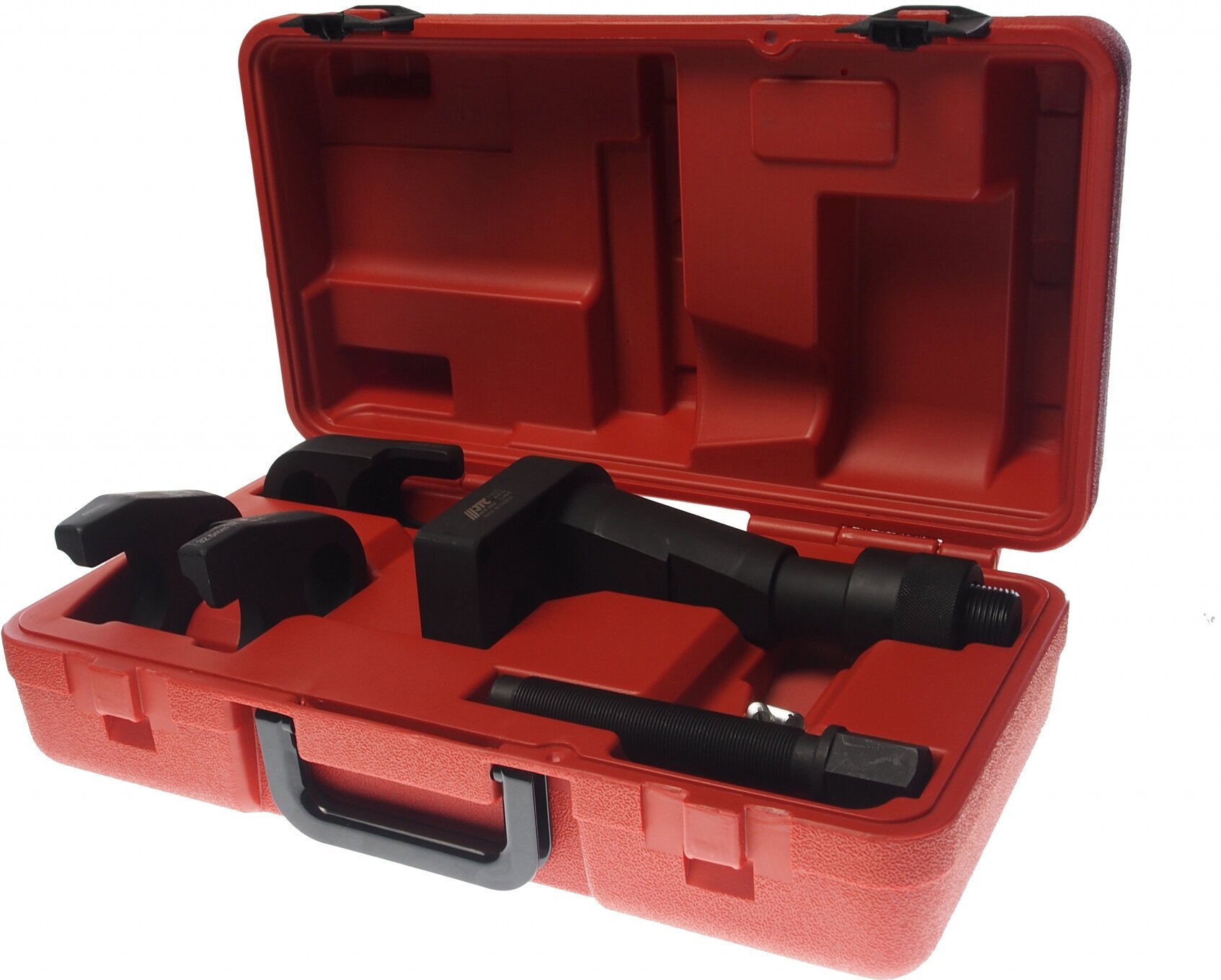 JTC- — универсальный съёмник шаровых опор для грузовых автомобилей. Он предназначен для демонтажа шаровых шарниров и рулевых тяг. В комплекте идут три сменных захвата размером 25, 32 и 48 мм.Преимущества Подходит для грузовых автомобилей марок DAF, IVECO, MAN, MERCEDES, SCANIA, VOLVO и других грузовиков Изготовлен из качественного материала, что обеспечивает долгий срок службы Прост в использовании и не повреждает детали автомобиля Компактный размер и лёгкий вес (9,95 кг) позволяют легко транспортировать и хранить инструмент