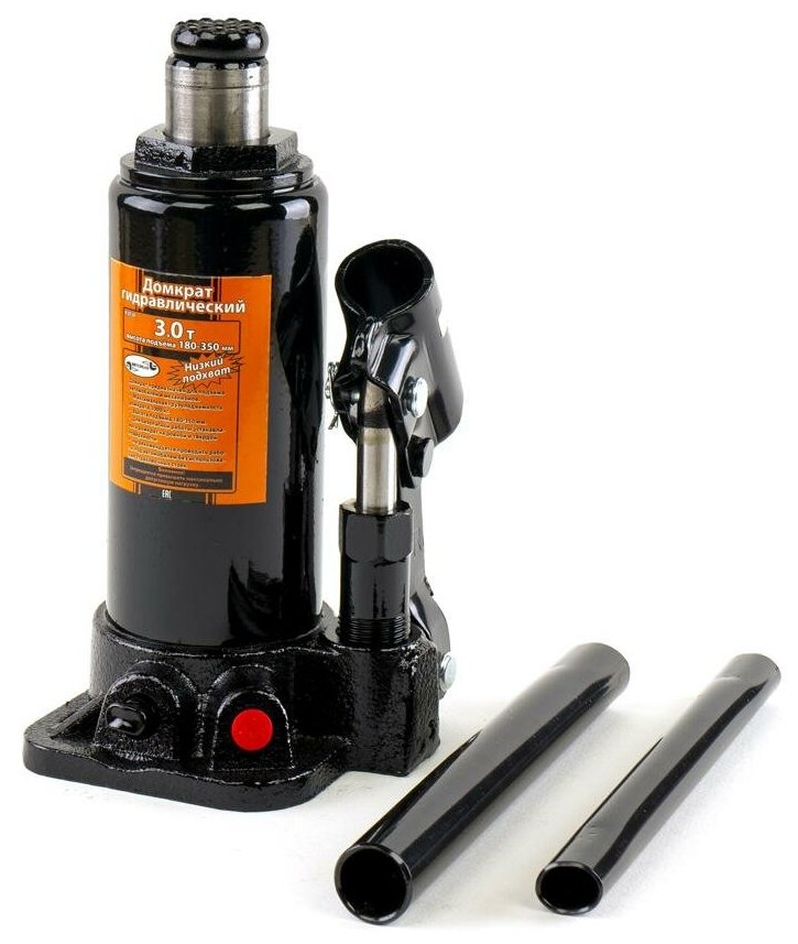 Домкрат гидравлический бутылочный 3 тонны, 180-350 мм АвтоDело - бутылочный домкрат, способный поднимать транспортные средства (с низким клиренсом) и не только для проведения ремонта, масса которых не превышает 3 тонны. Особенности: Домкрат гидравлический бутылочный прост в обслуживании и надежен в эксплуатации. Безопасность бутылочных домкратов Автодело обеспечивается с помощью защиты от перегрузки - это значит, что домкрат не позволит поднять массу, которая превышает максимум. В комплект насоса входит рукоятка привода гидравлического насоса. Данная модель бутылочного гидравлического домкрата обладает низким подхватом - это значит, что маленькая высота подхвата, равная 180 мм, позволяет использовать его с машинами, имеющими небольшой клиренс. Грузоподъемность 3 тонны Высота подхвата 180 мм Высота подъема 350 мм Защита от перегрузки Есть Рабочий ход 110 мм Количество штоков 1 Ход плунжера 110 мм Ход выдвижного винта 60 мм Материал корпуса Металл Кейс Нет Вес изделия брутто 4 кг Преимущества АвтоDело : Надежность домкрата гарантирует его усиленная конструкция. Встроенный предохранительный клапан защиты от перегрузки позволяет предотвратить избыточное давление и, тем самым, предохраняет домкрат от поломки. Гидравлическую составляющую насоса можно применять, когда температура окружающей среды находится в диапазоне от минус 20 до плюс 50 градусов Цельсия. Домкрат оснащён дополнительным винтом рабочего плунжера.