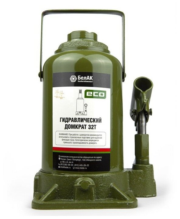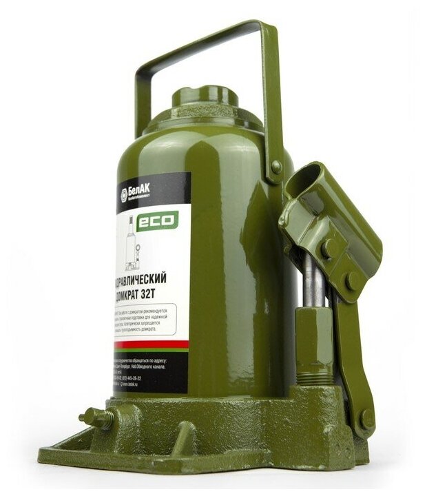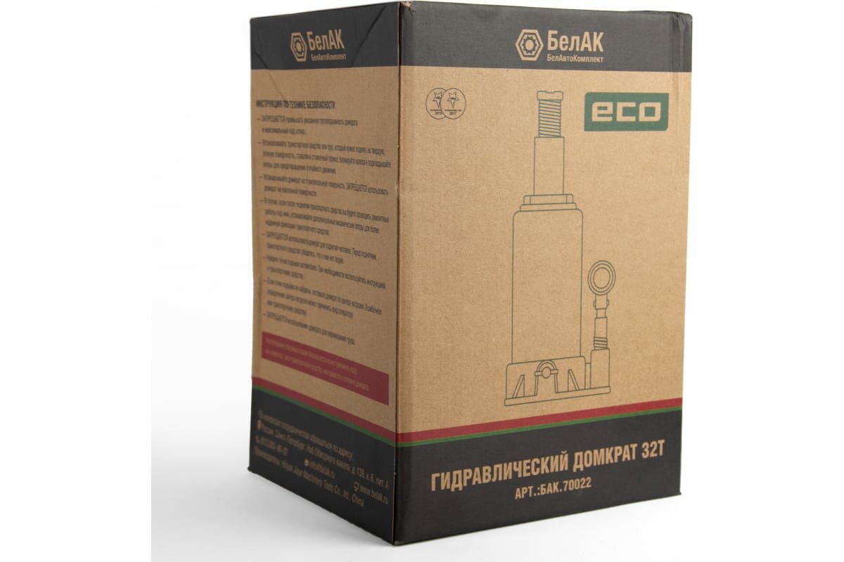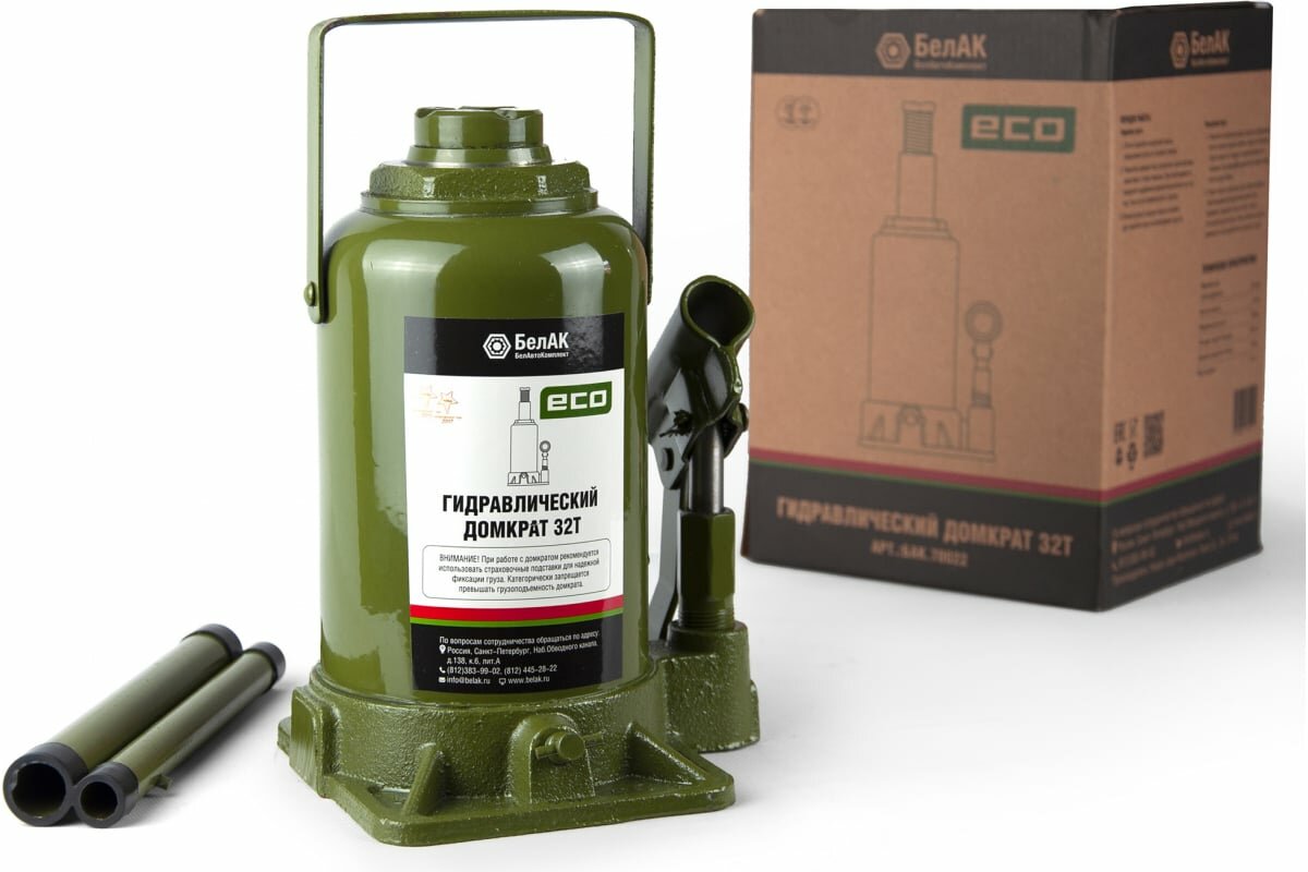 Домкрат ECO 32 тонны «БелАК» разработан российским производителем «БелАК», награждённым двумя национальными премиями «Автокомпонент года» и «Автоаксессуар года» за высокое качество и надежность выпускаемых домкратов. Продукция «БелАК» соответствуют нормам сертификации ISO9001 и ЕАС.