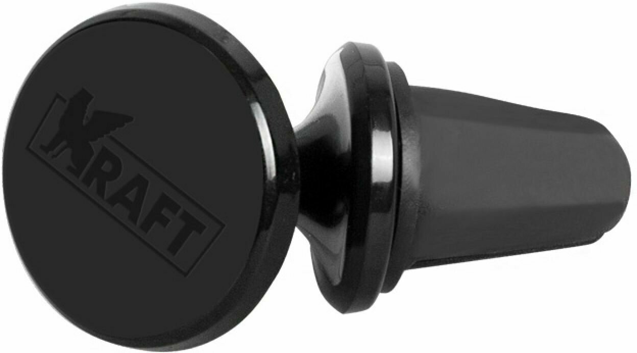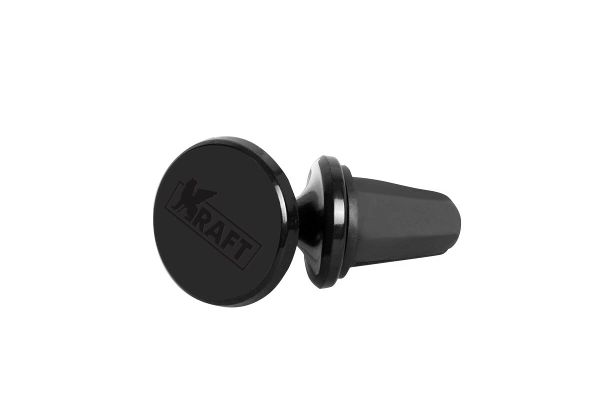Держатель магнитный для телефона на дефлектор KRAFT вращ. Надежный, стильный, невероятно удобный автомобильный держатель для телефона KRAFT можно установить в любой машине, в которой есть воздуховод. Магнитная часть поворачивается на стальном шарнире и прочно остается в выбранном положении. Смартфон можно наклонять под любым углом. Магнитное поле неодимового магнита не вредит смартфону. Антискользящее покрытие площадки не позволит смартфону упасть. В комплекте поставляется: магнитный держатель; 2 фирменных пластины диаметром 30 мм на телефон; 2 прозрачные наклейки диаметром 45 мм на корпус телефона. Как пользоваться держателем: прикрепите металлическую пластину на середину мобильного устройства или под чехол. Закрепите держатель на воздуховод автомобиля.
