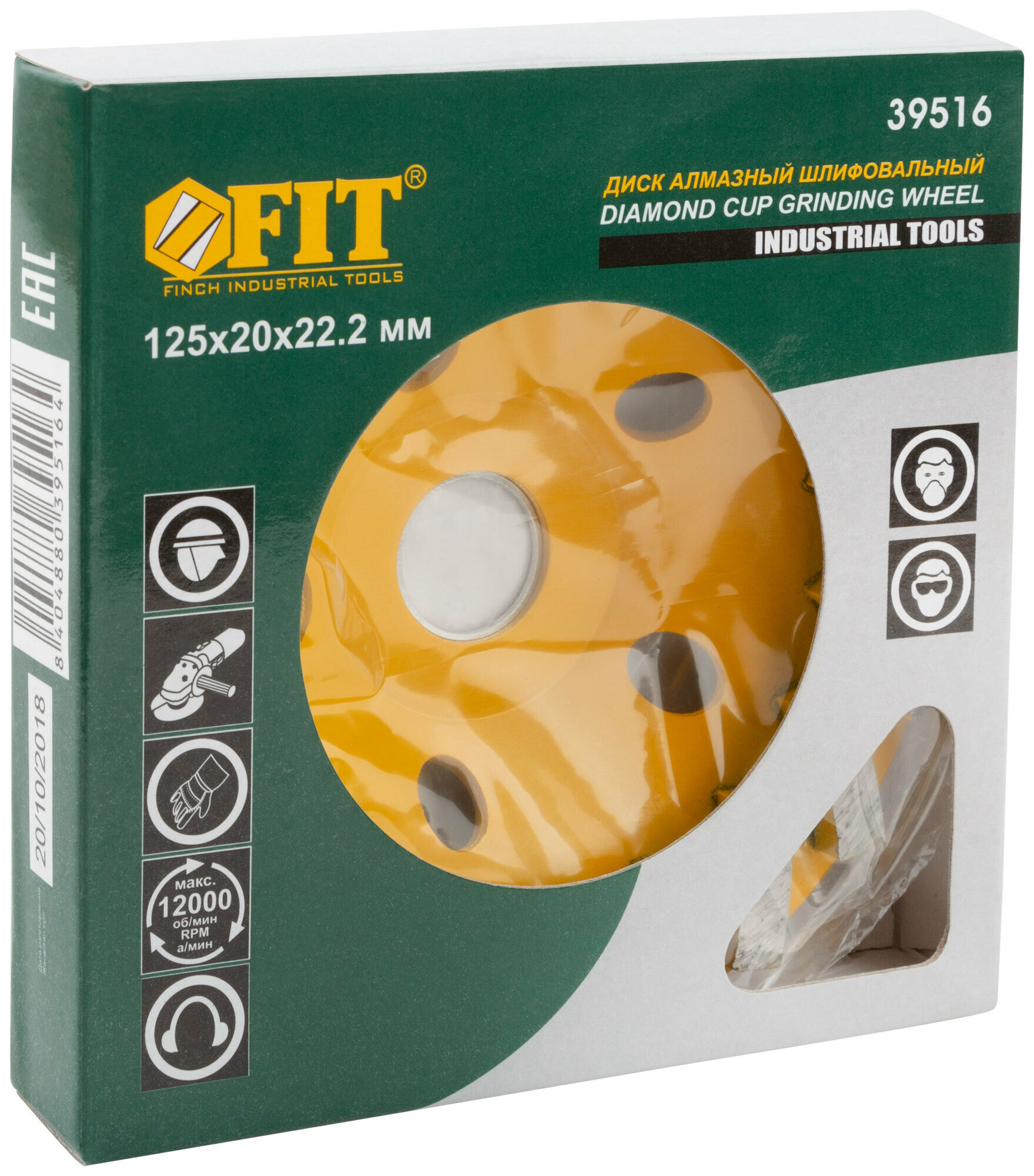 | Доп. наименование Водопад | Диск шлифовальный Fit "Турбо-сегмент" 39516 алмазный, 22,2 мм, 125 мм |