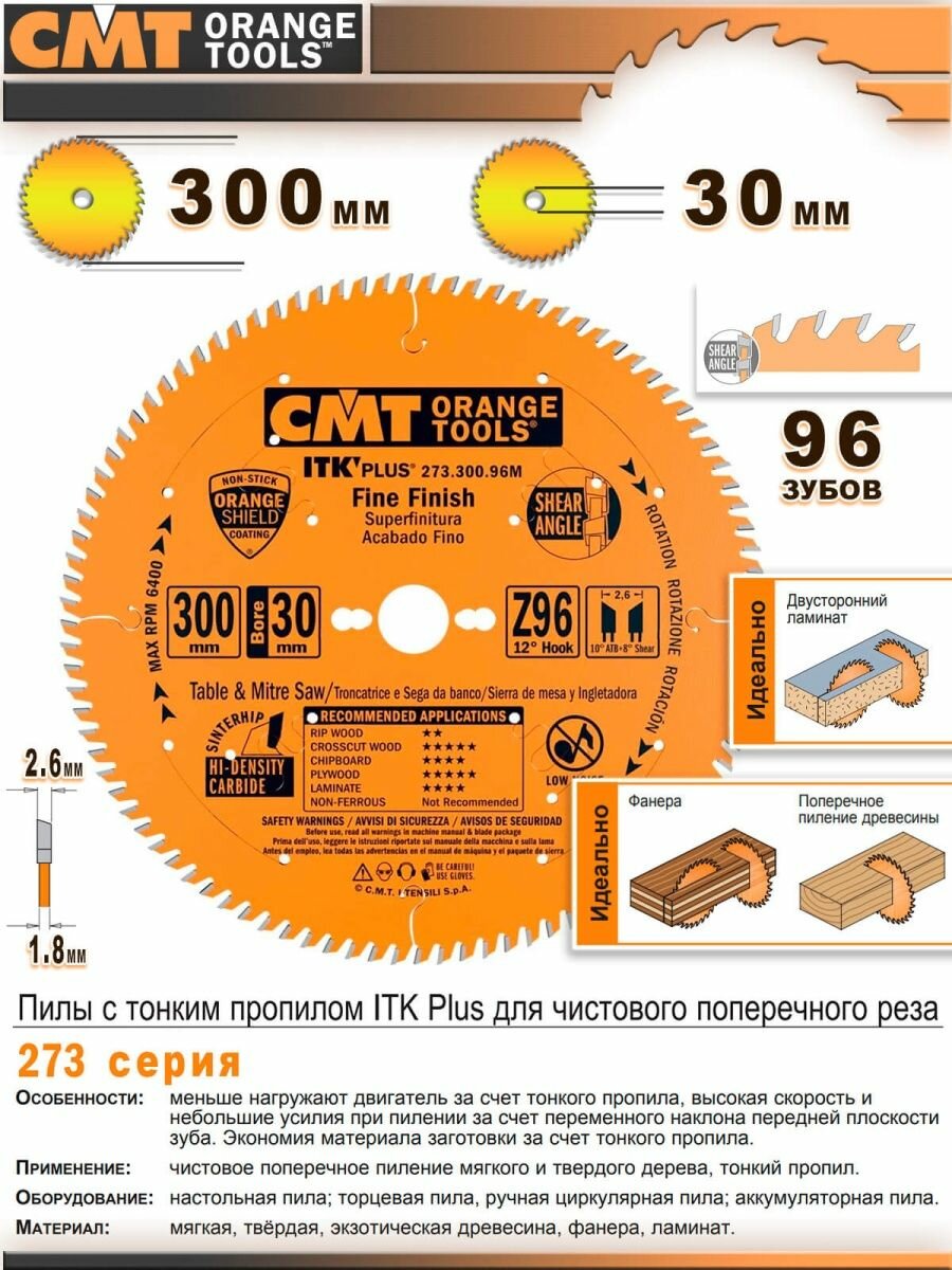 Диск пильный твердосплавный Cmt Ф300х30мм 96зуб. (273.300.96m)