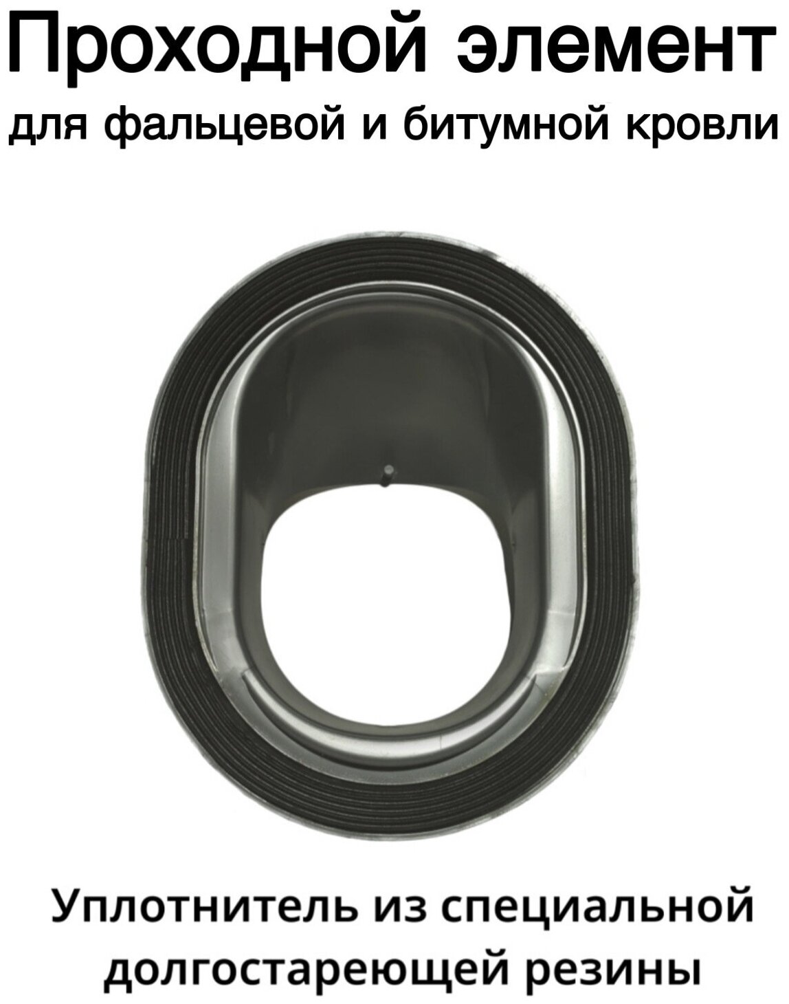 Проходной элемент ND для фальцевой и готовой кровли из битумной черепицы служит основанием для монтажа вентиляционного или канализационного выходов. Совместим с металлочерепицей типа Monterrey и устанавливается на уже готовую кровлю. Также подходит для кровель с применением металлочерепицы производства Гранд Лайн, Металл Профиль. Используется совместно с турбодефлетором. Особенности проходного элемента для фальцевой и битумной кровли На нижней поверхности имеется слой специальной резины, которая играет роль уплотнителя и обеспечивает надежную герметичность и гидроизоляцию при монтаже на кровлю и фиксации саморезами. Размеры проходного отверстия 250*160 мм. Проходной элемент для турбодефлектора – применение Вентиляция дома. Элемент проходной применяется на скатные кровли с уклоном от 5 с плоской поверхностью (гибкая черепица, металлическая фальцевая кровля, плоские асбестоцементные листы) непосредственно на кровельное покрытие. Вентиляция в гараже. Дефлектор и проходной элемент не позволяют образовываться сырости, вследствие чего все имущество не будет подвержено коррозии.