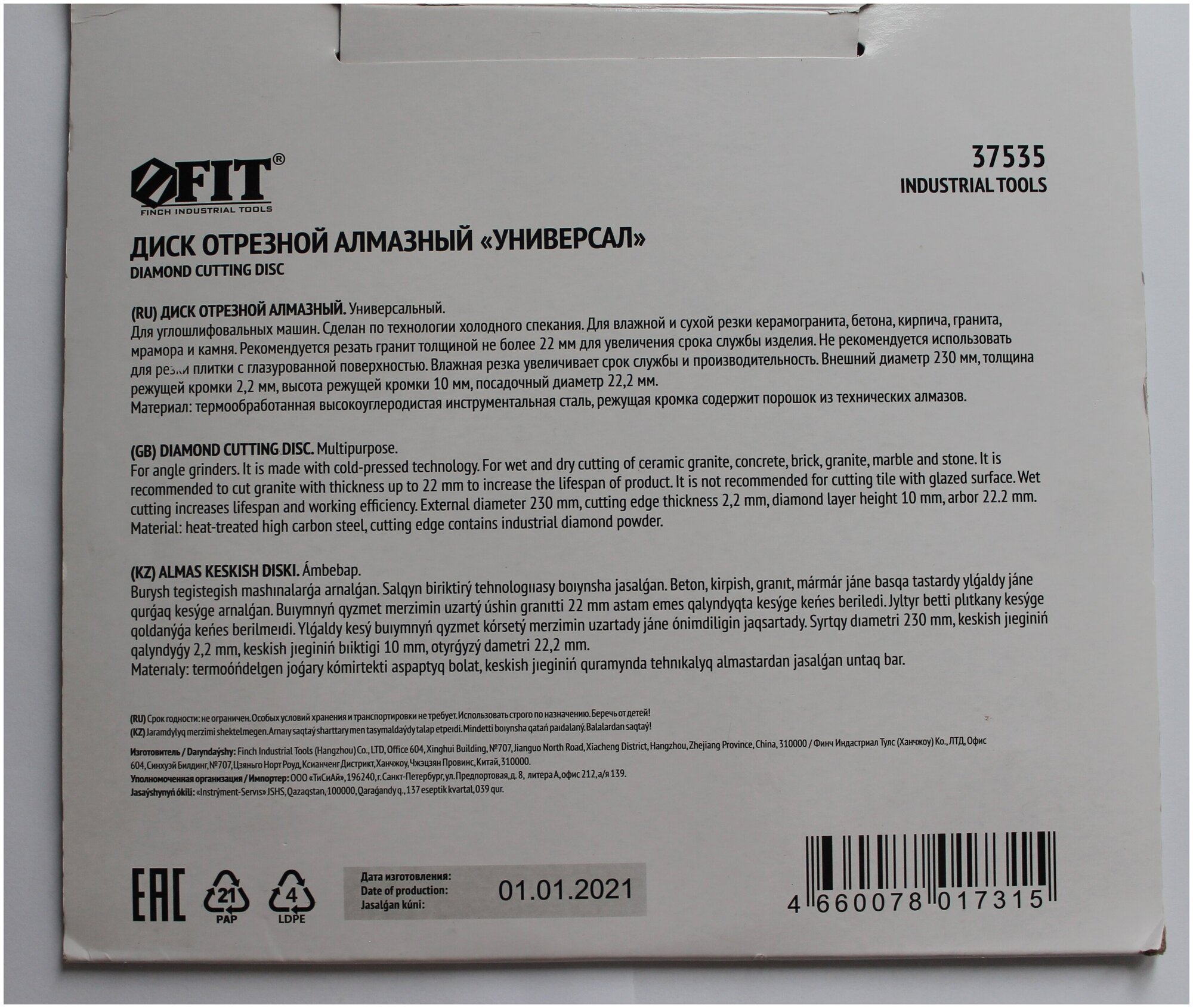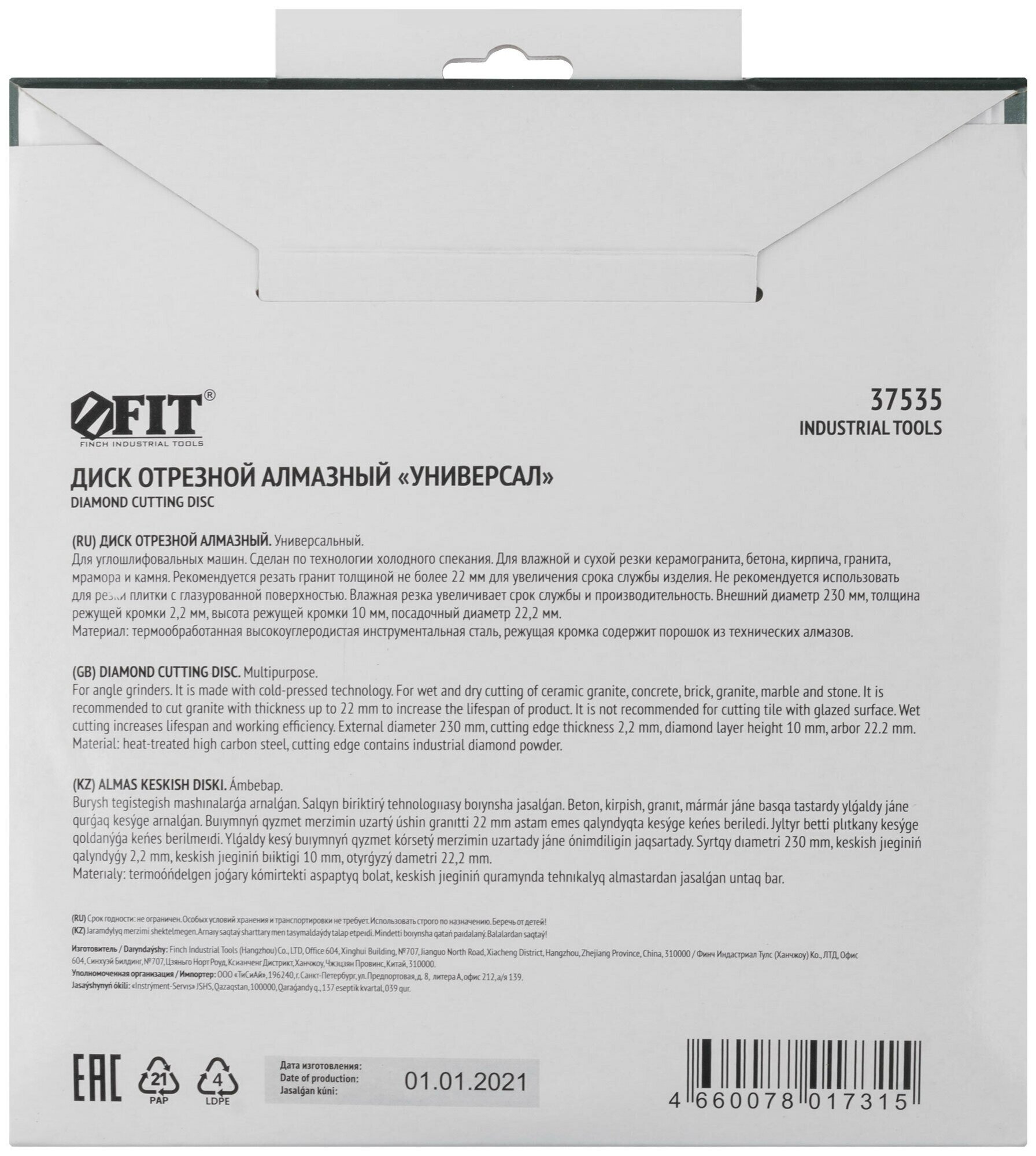 Универсальный отрезной алмазный диск FIT (it 37535) универсальный Ф230х22,2мм