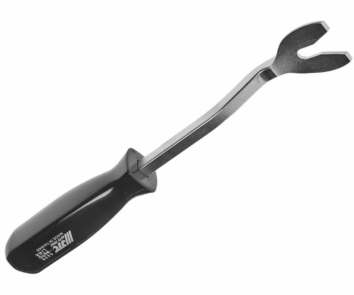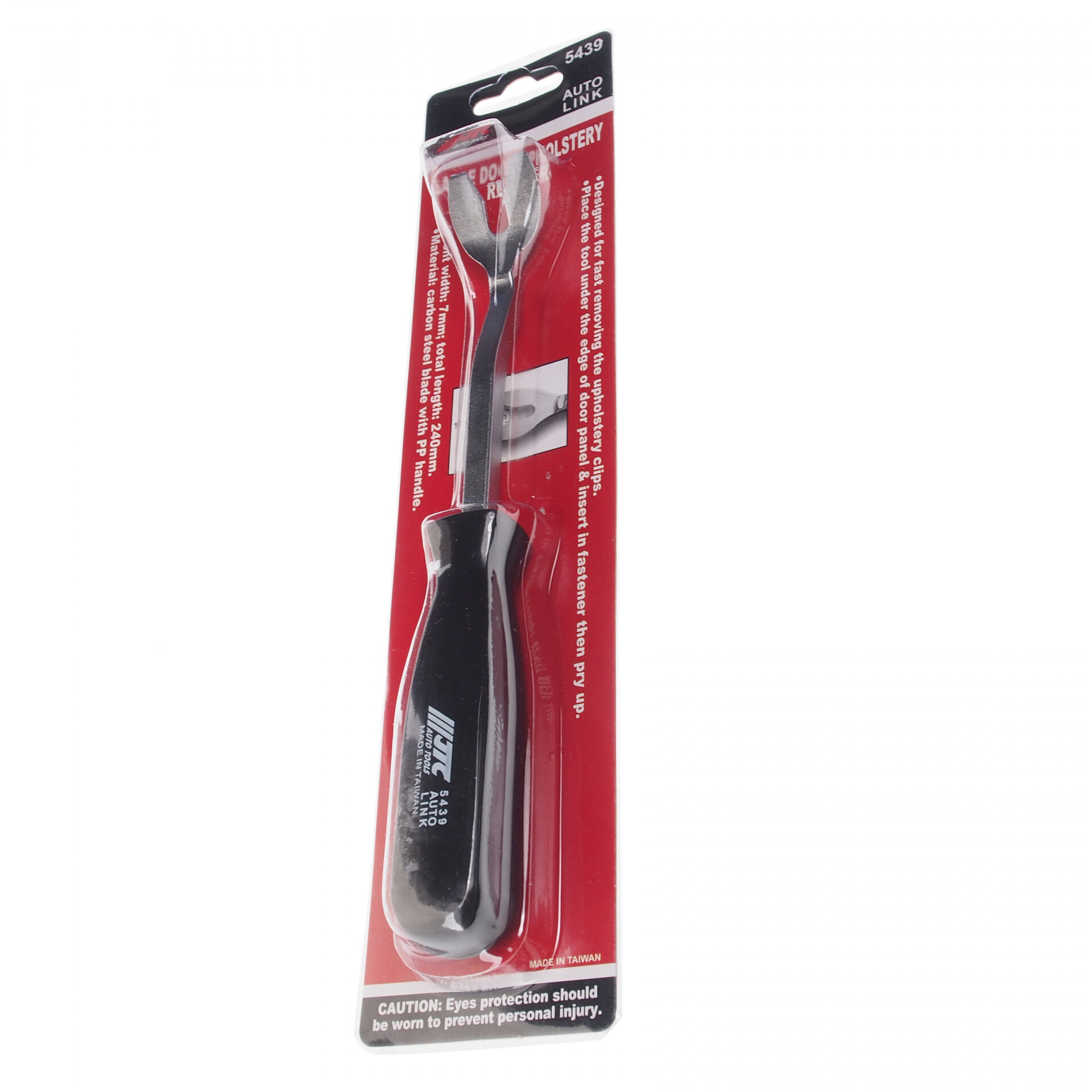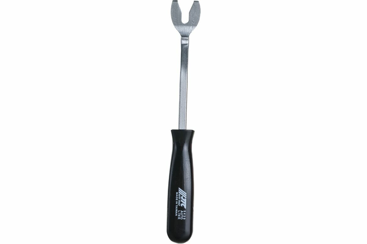 Съемник клипс обшивки двериJTC /1 JTC-. Инструмент предназначен для расклинивания скоб внутренней дверной обшивки. Завести инструмент под край дверной панели, вставить в крепление и затем поддеть. Ручка: черная, полипропилен. Внутренний диаметр: 7 мм. Внешний диаметр: 30 мм. Длина: 240 мм.