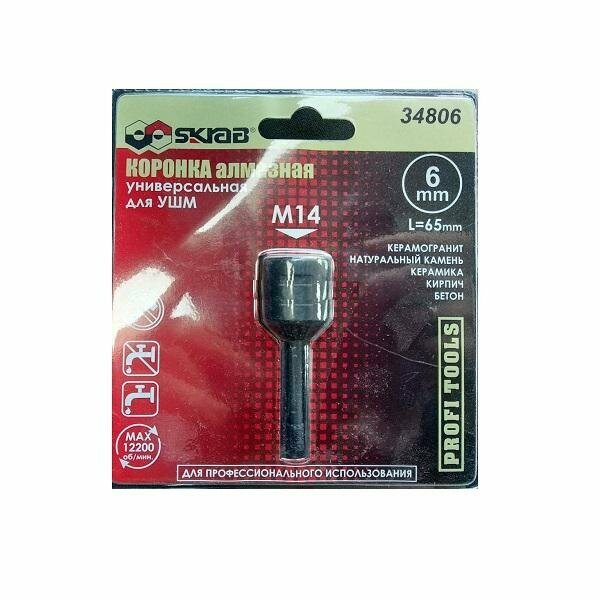 Алмазная коронка для УШМ SKRAB Ф6мм М14 (34806)