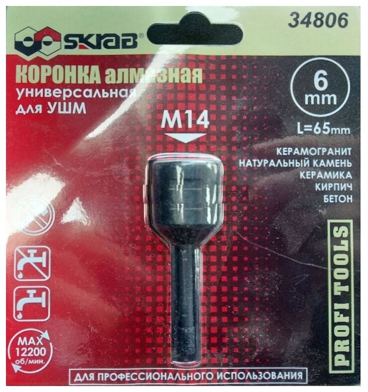 Сервис сравнения цен СкидкаГИД предлагает сравнить цены на товар «Алмазная коронка для УШМ SKRAB Ф6мм М14 (34806)»