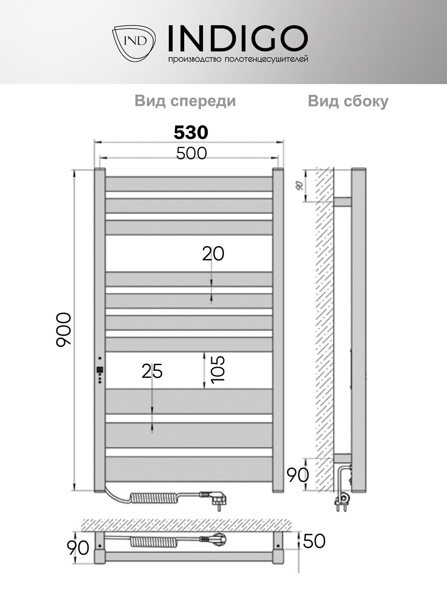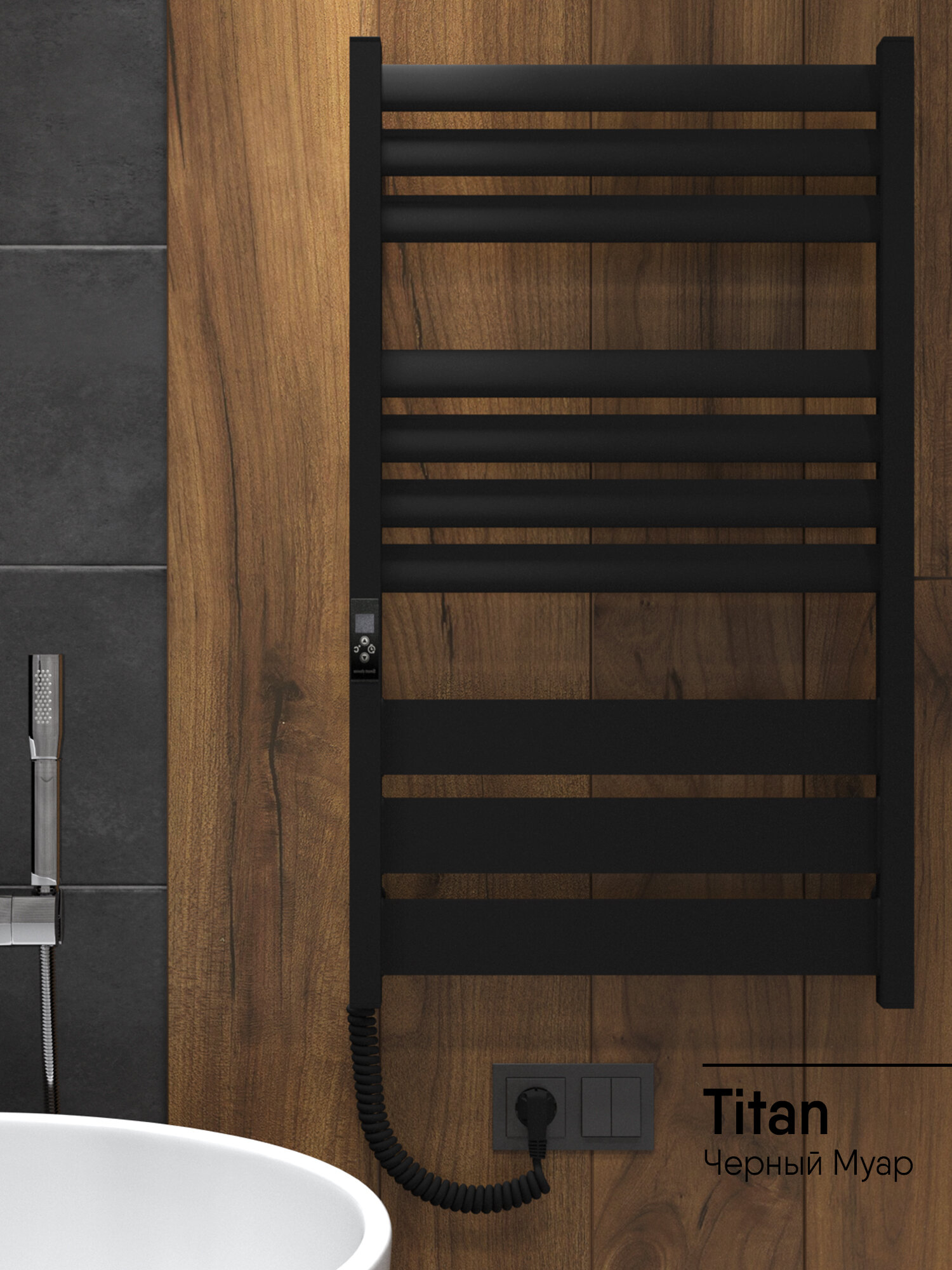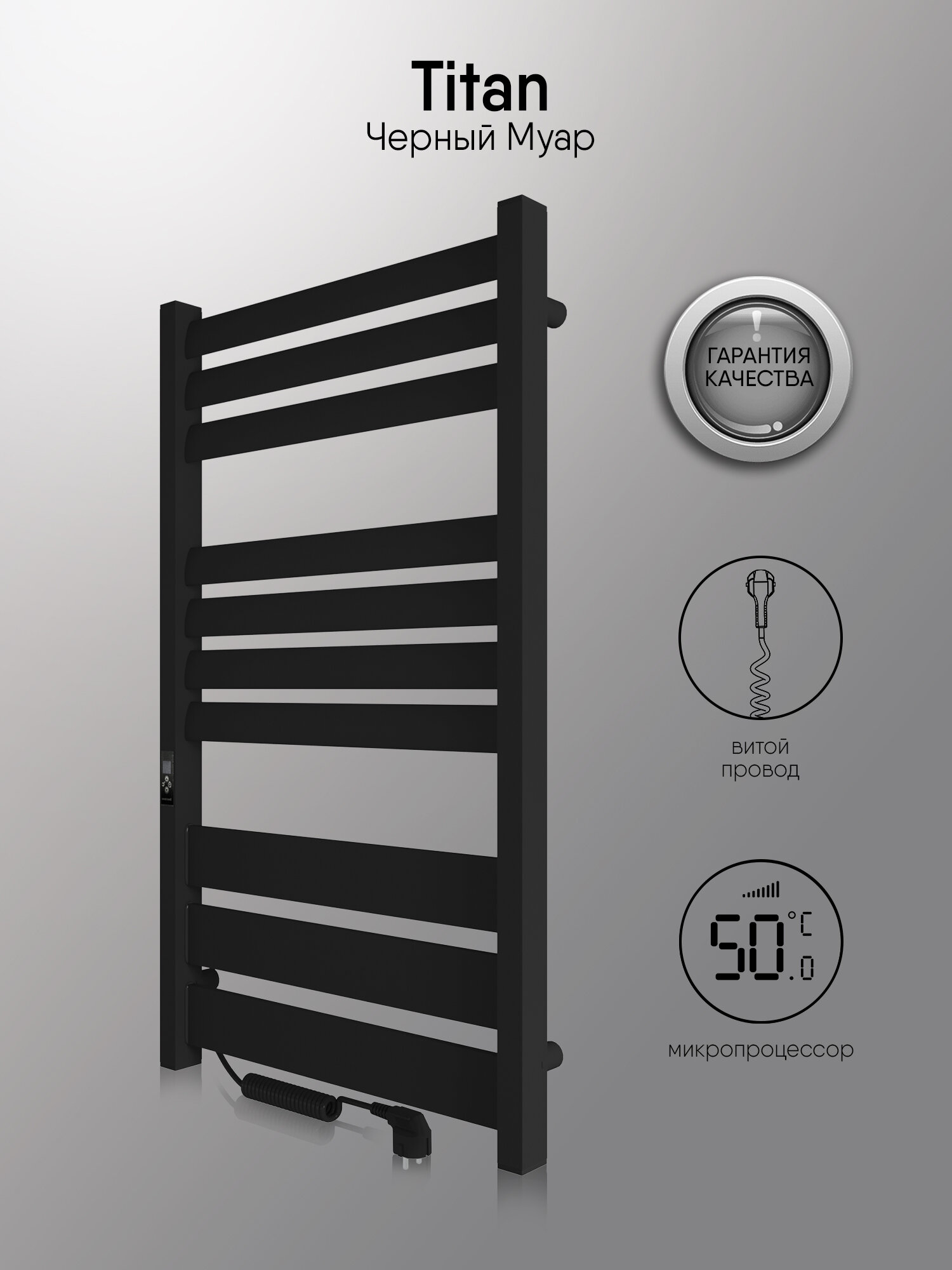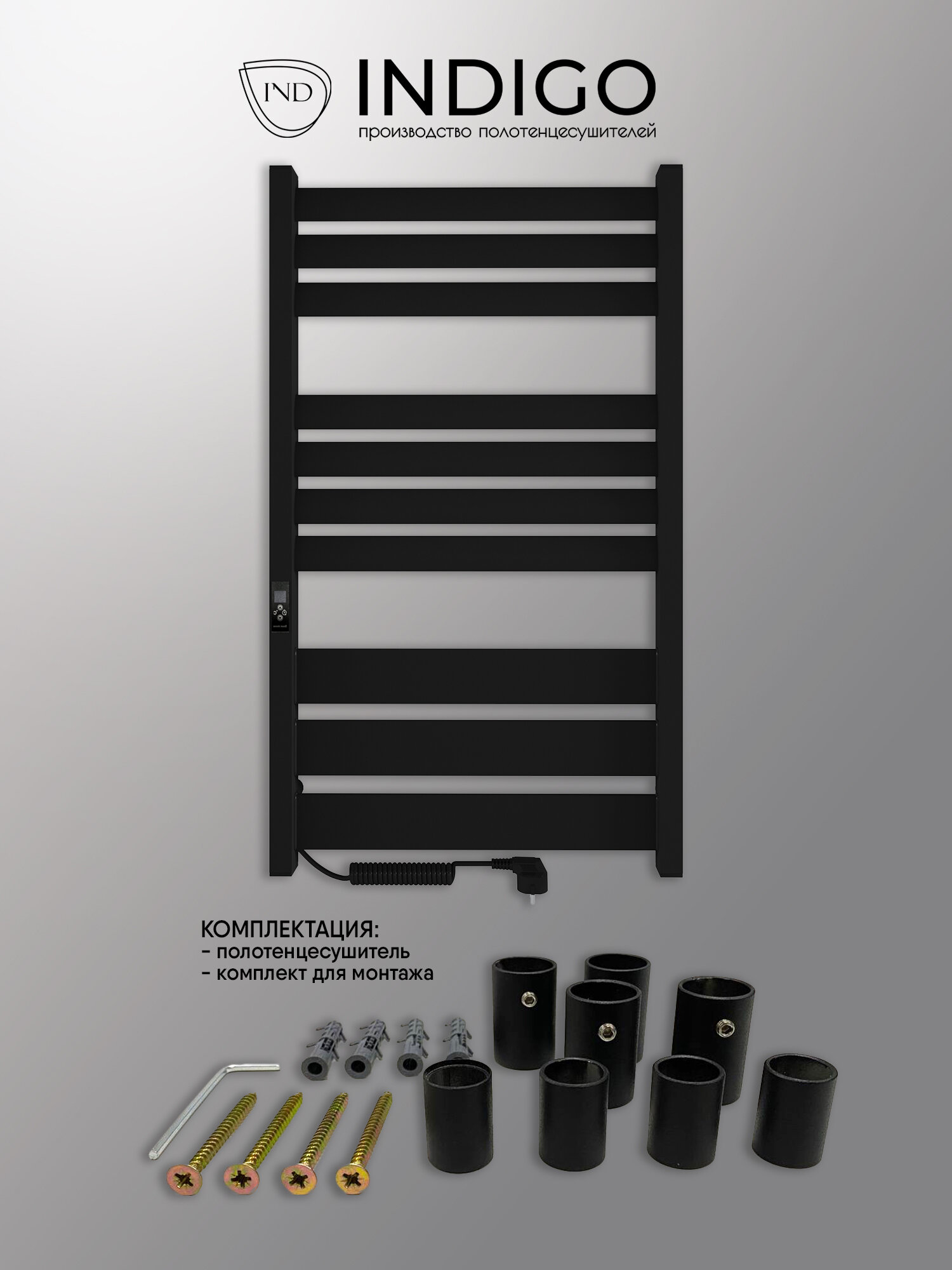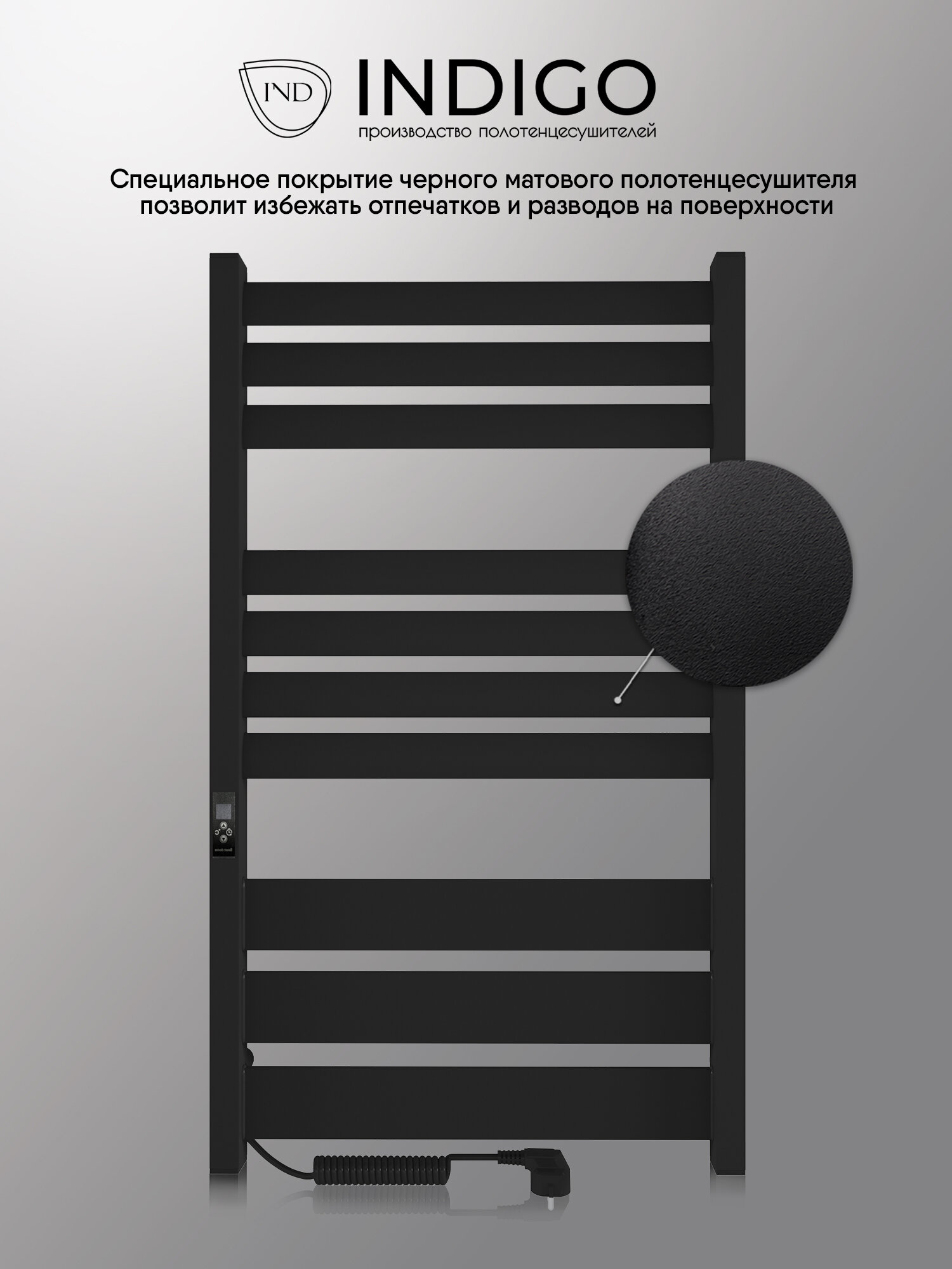 | Доп. наименование Водопад | Полотенцесушитель электрический Indigo Titan 900х500, провод справа, черный матовый |
