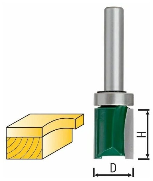 Используется для работ по дереву. С верхним подшипником. Для выборки заподлицо. Цилиндрический хвостовик. Материал: инструментальная сталь, с твердосплавными режущими вставками. Упаковка: пластиковая коробка.