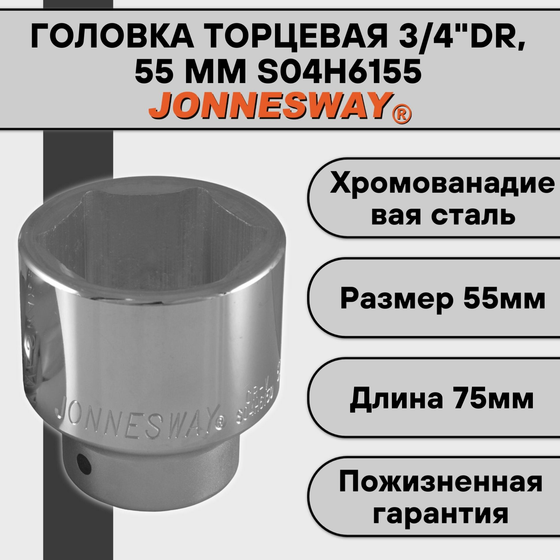 Головка Jonnesway размер 55мм, Н 76мм, s 3/4'' (s04h6155)