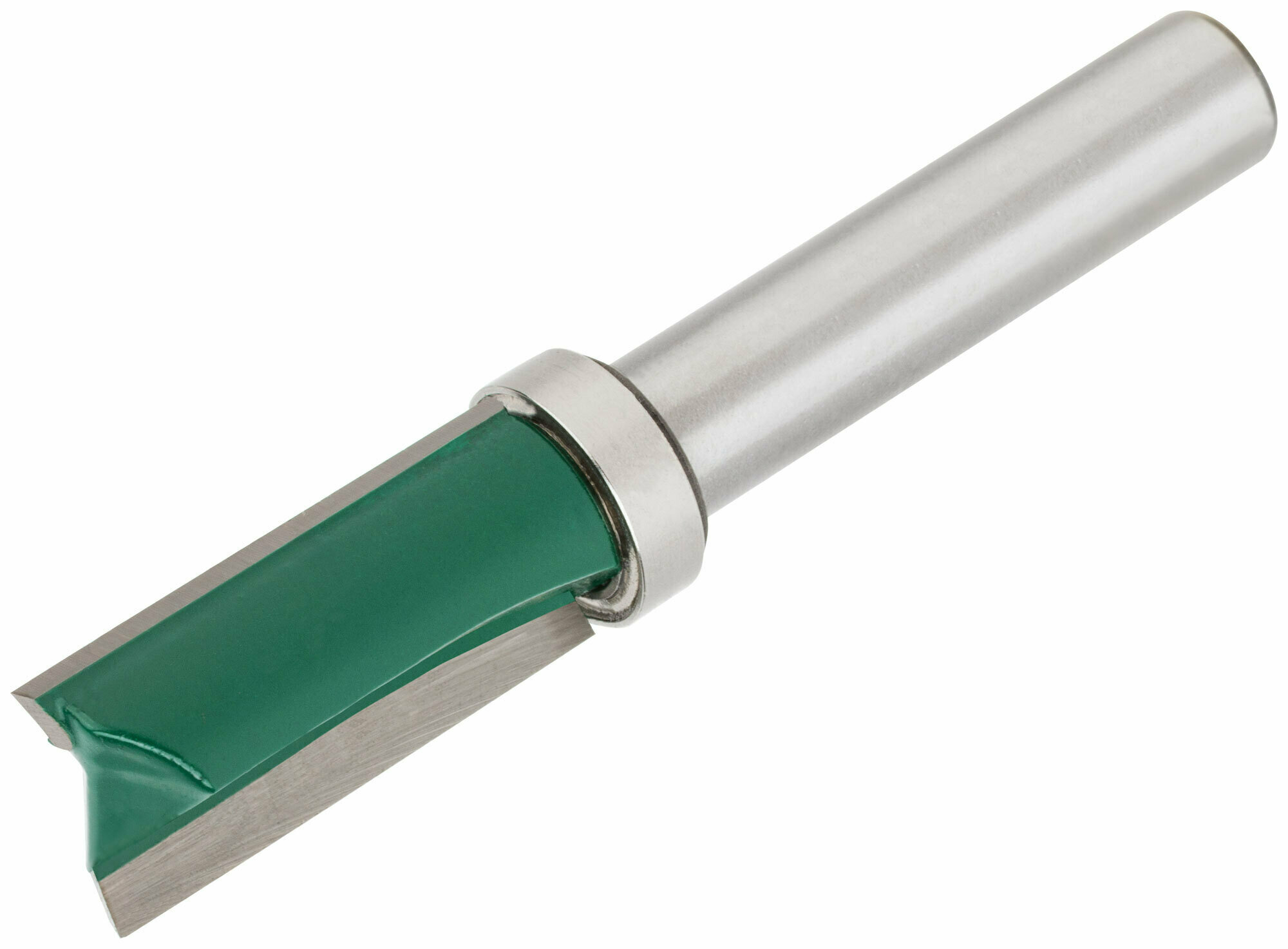 Используется для работ по дереву. С верхним подшипником. Для выборки заподлицо. Цилиндрический хвостовик. Материал: инструментальная сталь, с твердосплавными режущими вставками. Упаковка: пластиковая коробка.