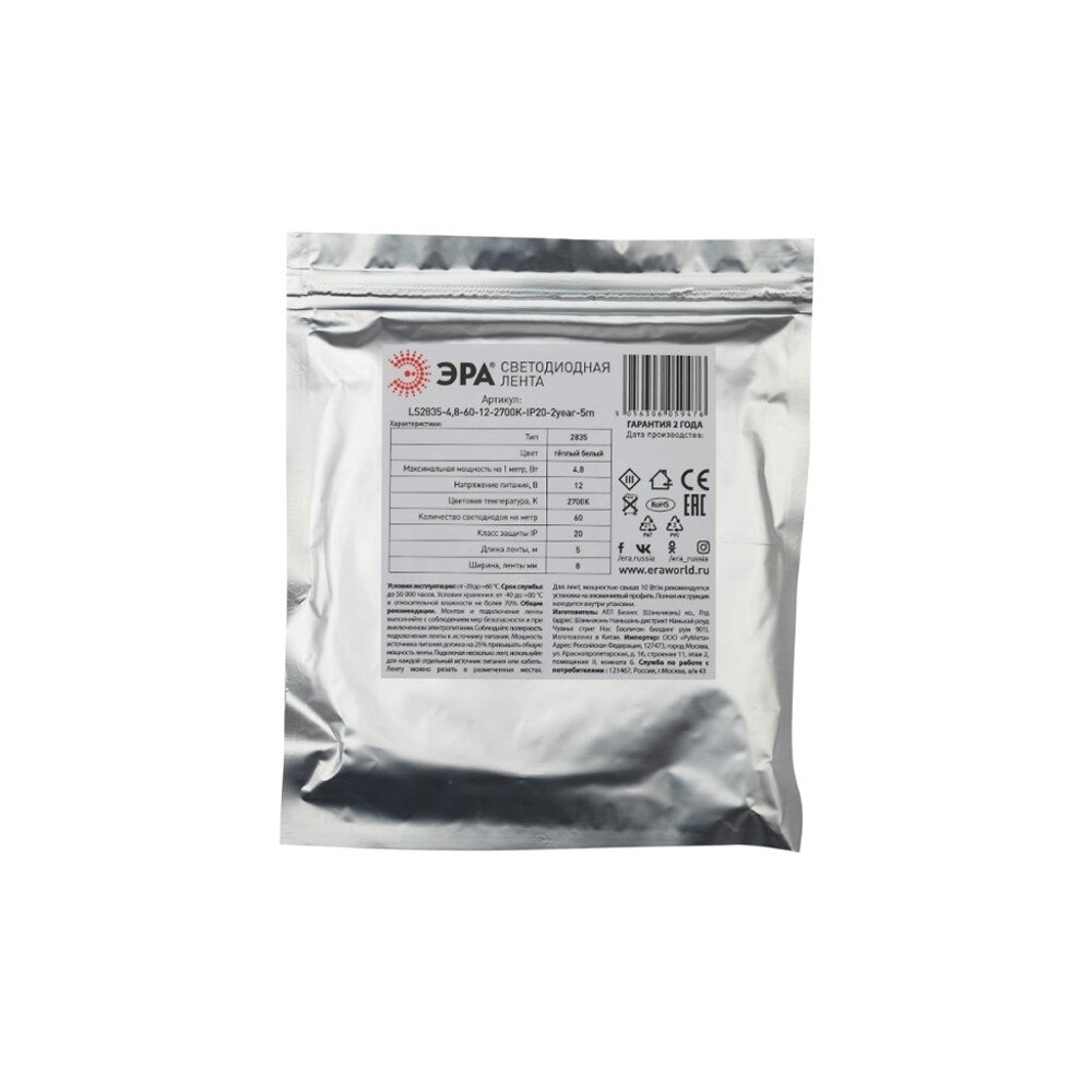 Светодиодная лента ЭРА Ls2835-4,8-60-12-2700k-ip20-2year-5m (Б0044108)