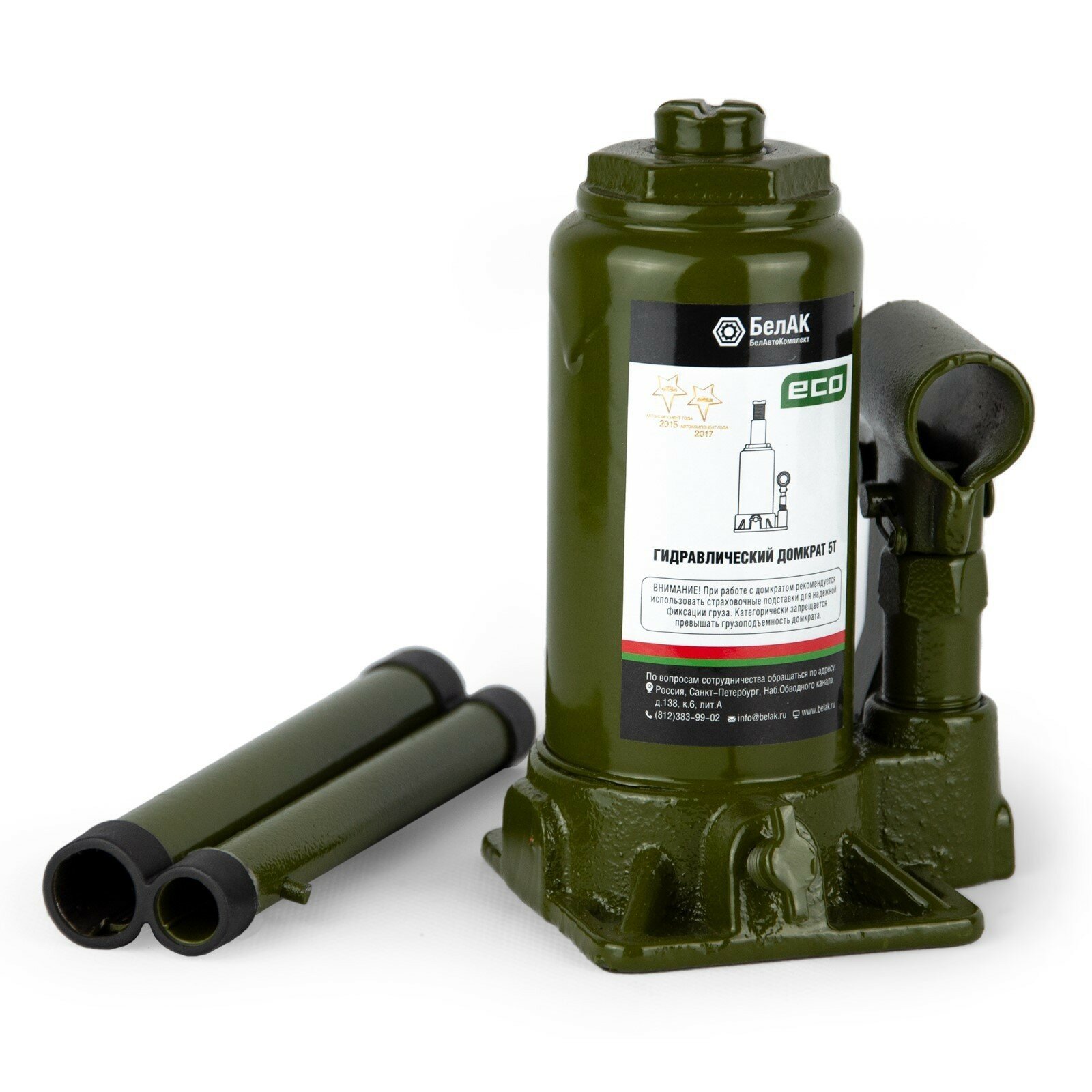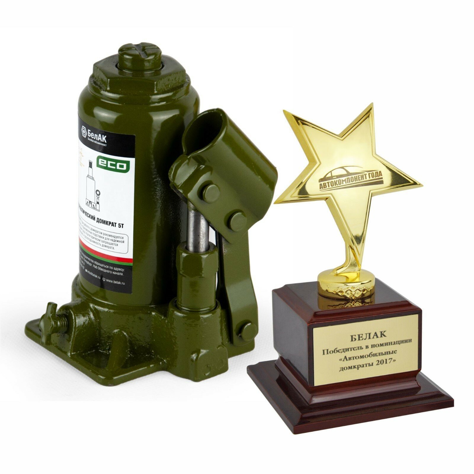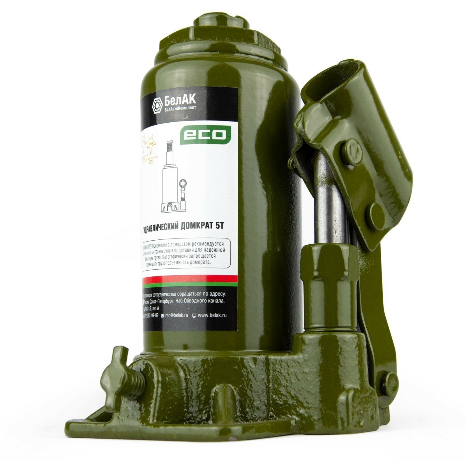Домкрат ECO 5 тонн «БелАК» разработан российским производителем «БелАК», награждённым двумя национальными премиями «Автокомпонент года» и «Автоаксессуар года» за высокое качество и надежность выпускаемых домкратов. Продукция «БелАК» соответствуют нормам сертификации ISO9001 и ЕАС.