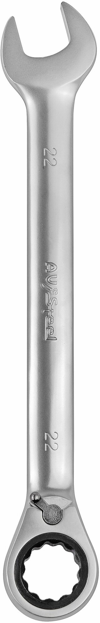 Комбинированный трещоточный ключ с реверсом AV Steel 22мм шт удобен в использовании за счет качественной и надежной трещотки.Для простоты вращения есть переключатель - его можно передвинуть, не снимая ключ с крепежа. Шероховатая поверхность тела инструмента исключает бликование на солнце и упрощает использование.