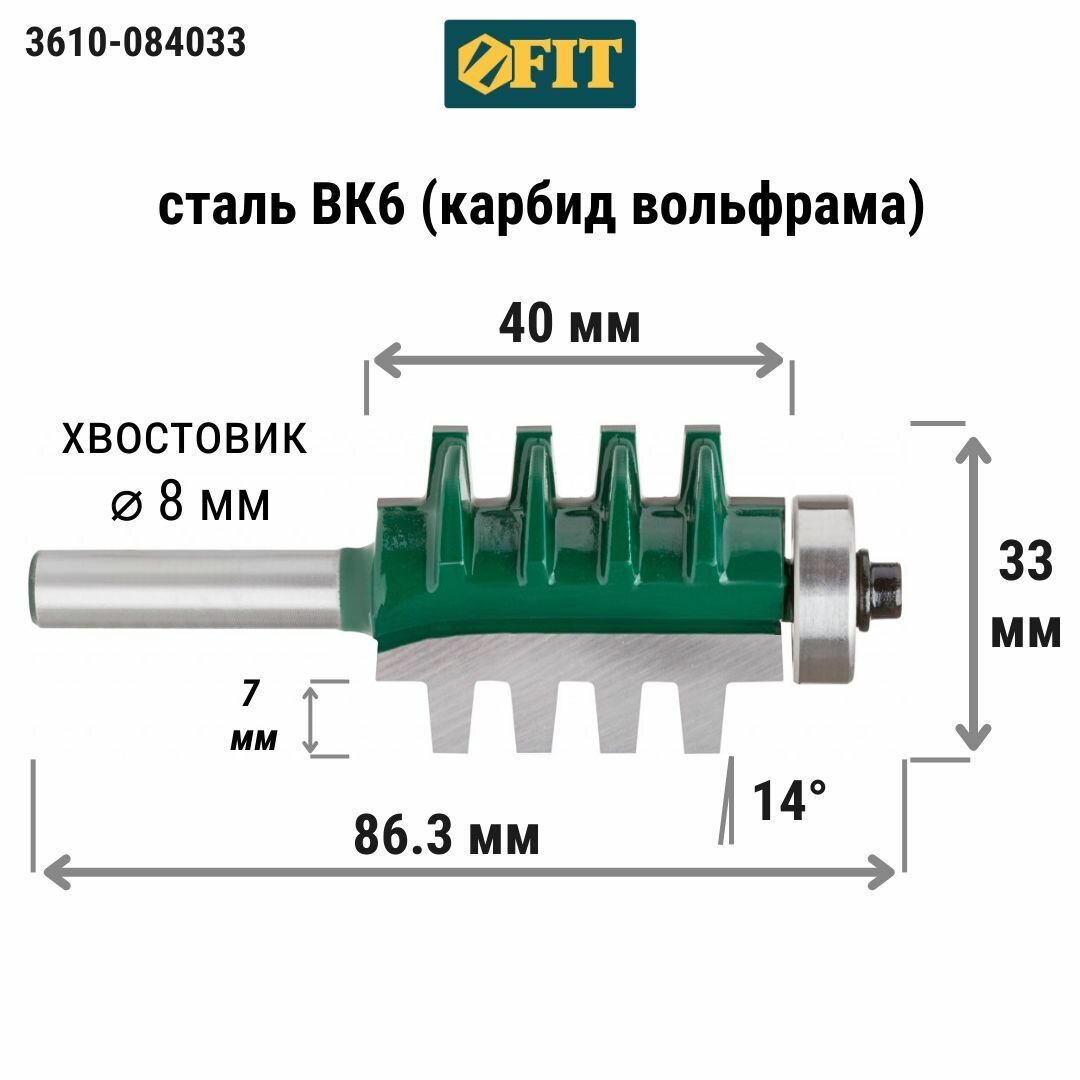 Сервис сравнения цен СкидкаГИД предлагает сравнить цены на товар «Кромочная пазо-шиповая фреза FIT (3610-084033) Ф8 s8мм i86.3мм»