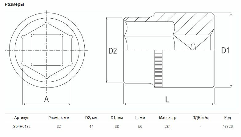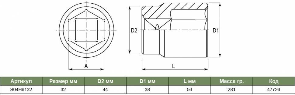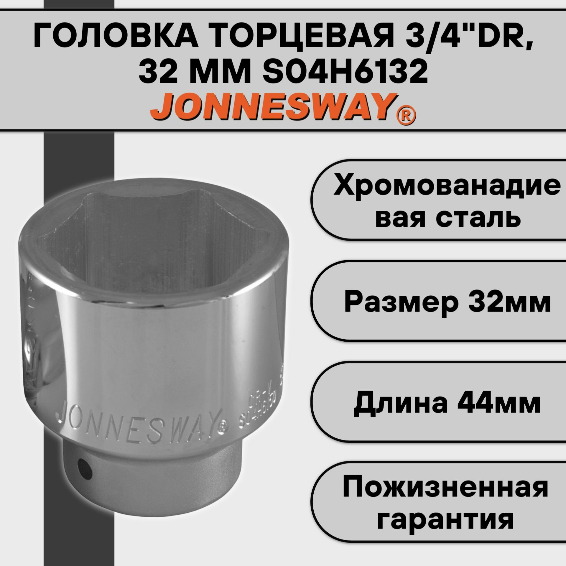 Головка Jonnesway размер 32мм, Н 56мм, s 3/4'' (s04h6132)