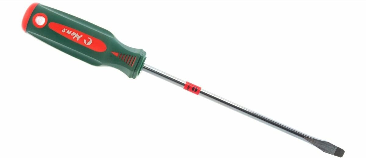 Отвертка шлицевая Hans , 8*200 мм - подходит как для бытового использования, так и для профессиональной деятельности. Удлиненная конструкция особенно удобна при работе в труднодоступных местах.Преимущества Высокая прочность благодаря материалу CrV Комфортная работа за счет удлиненного стержня Надежная фиксация крепежа благодаря магнитному наконечнику Долговечность эксплуатации Универсальность применения Устойчивость к механическим нагрузкам