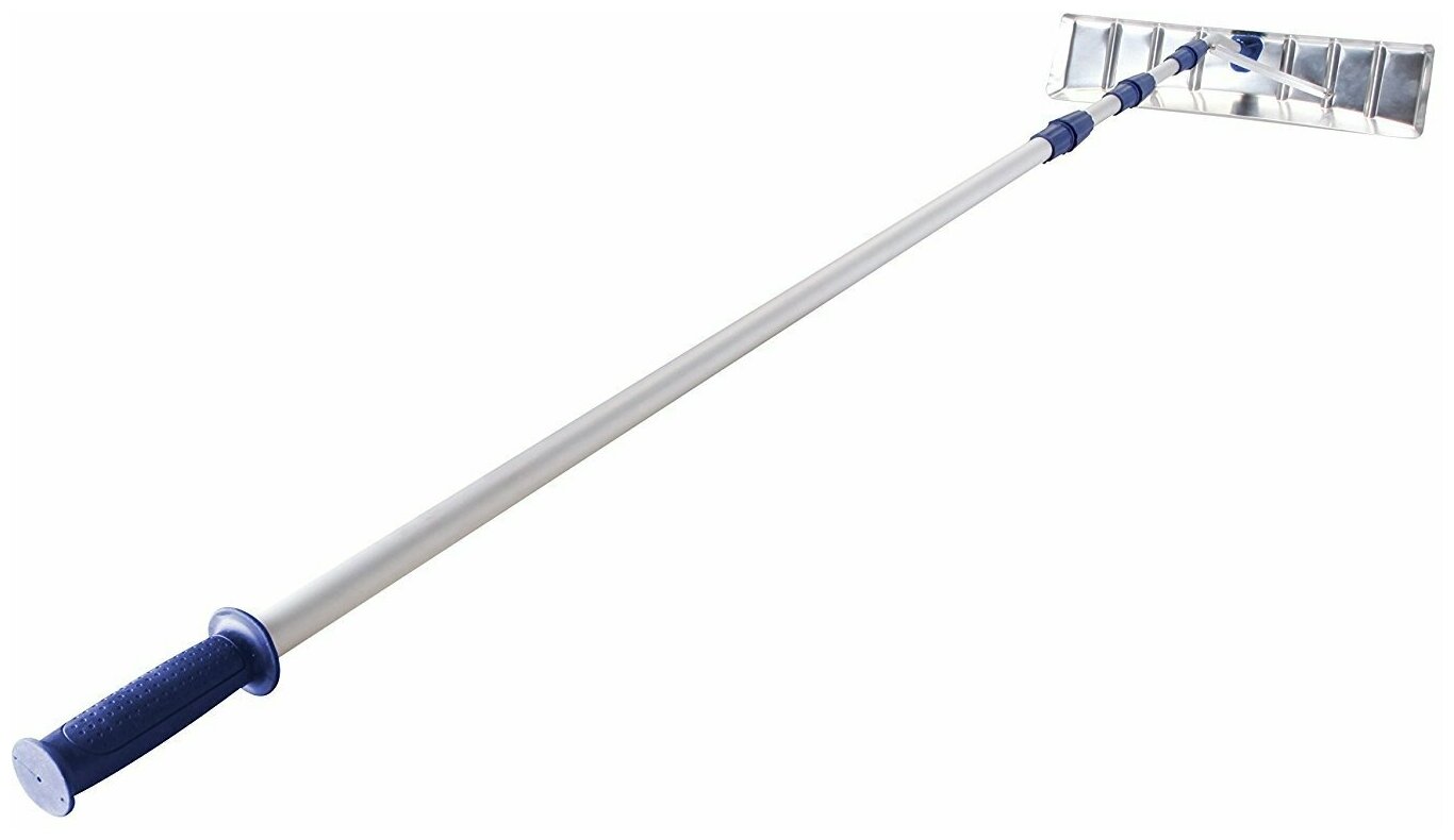 Скребок телескопический для удаления снега и сосулек с крыши Allumimium насадка 630*150*6300 Алюминиевая рабочая часть 630*160 мм, алюминиевая телескопическая ручка 1930- 6400 мм, * морозоустойчивые пластиковые соединители до -40 С Вес 2,3.