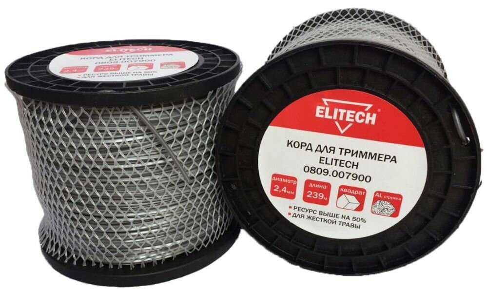 | Доп. наименование Водопад | Леска Elitech 0809.007900 2.4мм, 239м, квадрат, с алюминиевой стружкой, катушка |