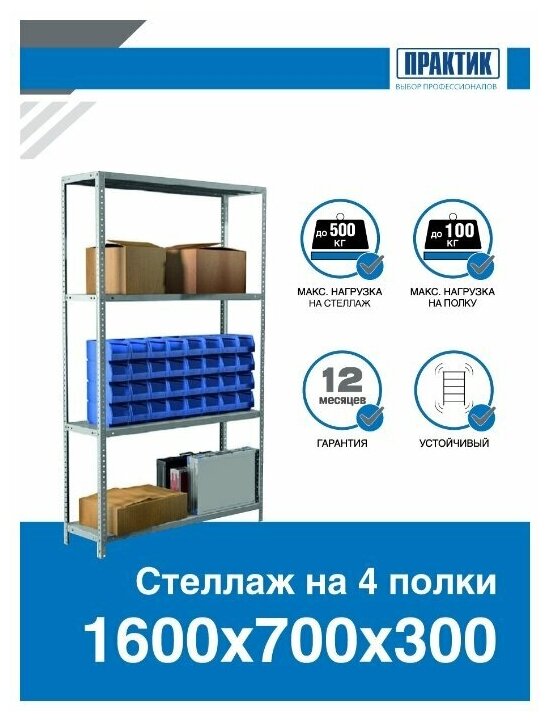 Стеллаж ПРАКТИК ПРОМЕТ Ms 160kd/70x30/4 (s24099023402)