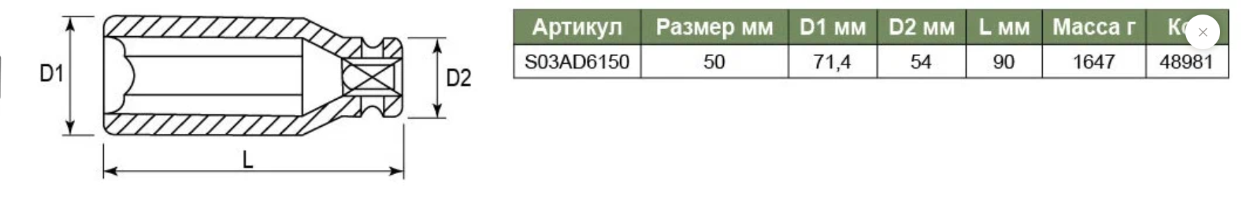 | Размер ключа (метрический) | 50 мм |