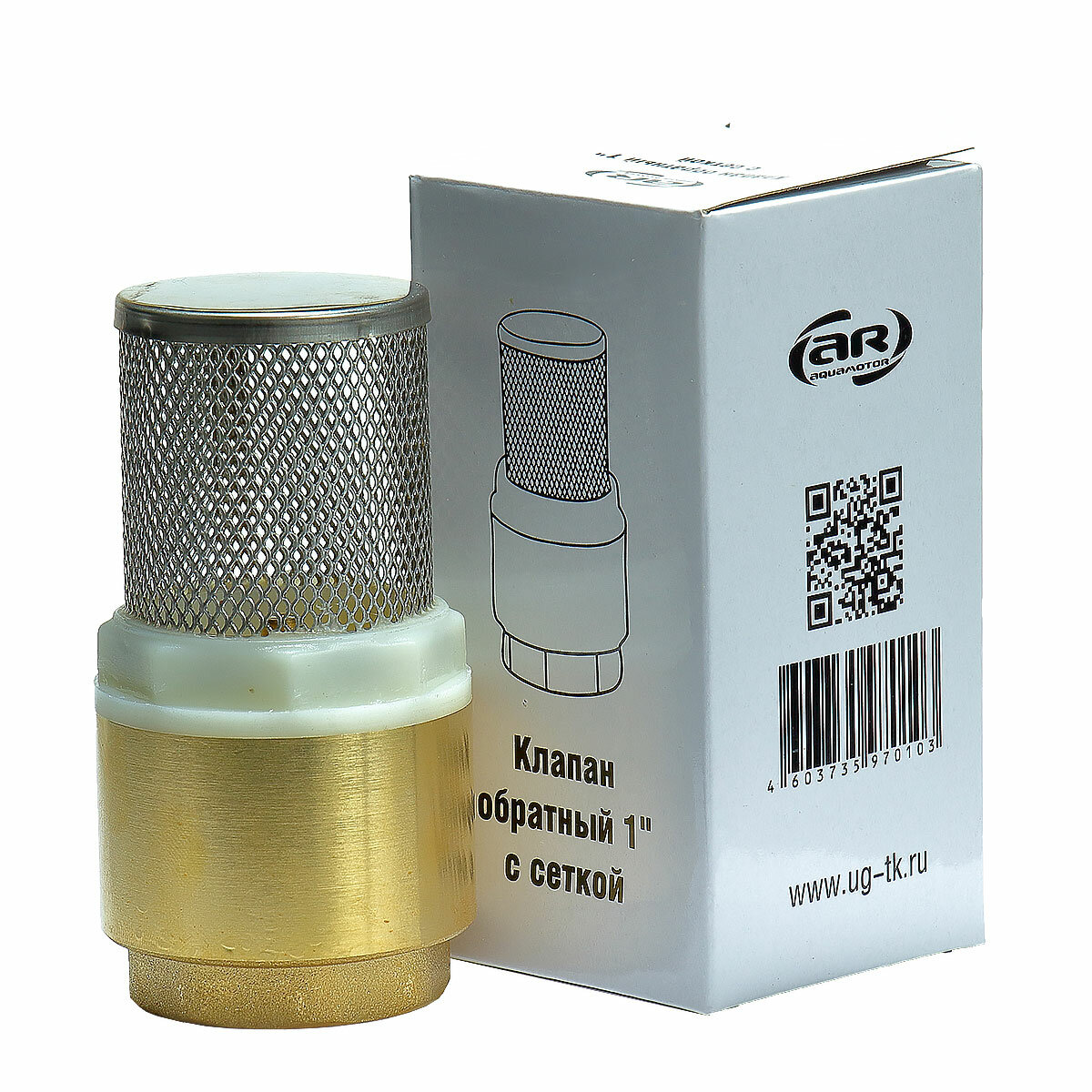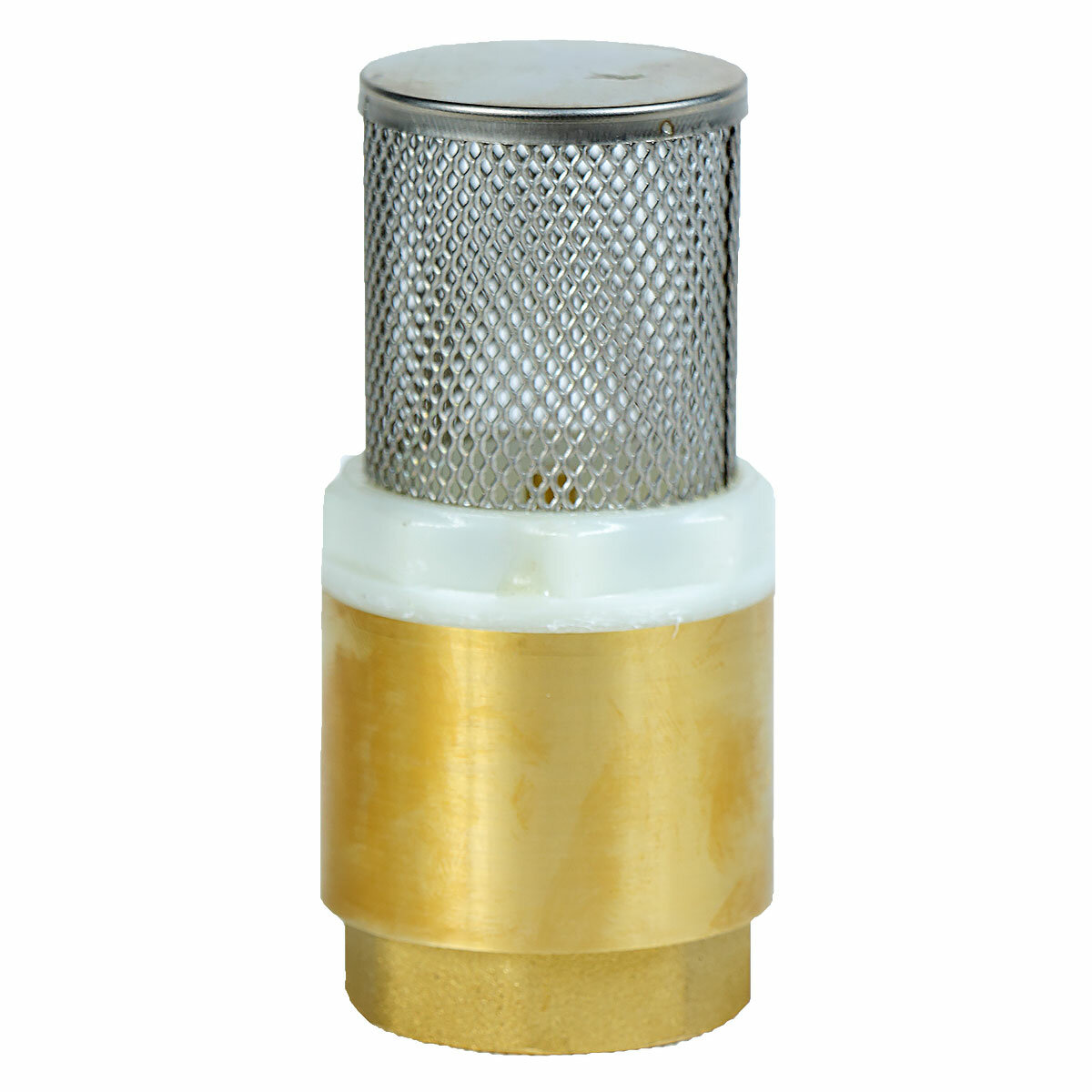 Клапан обратный 1" с сеткой из латуниПрименяют как элемент забора воды в составе систем водоснабжения на базе поверхностных насосов.Максимальное давление не более 12 бар.Диапазон рабочей температуры воды (1 - 99)°С.Подключение - внутренняя цилиндрическая трубная резьба.Материал корпуса клапана - латунь.Рабочая среда - вода.