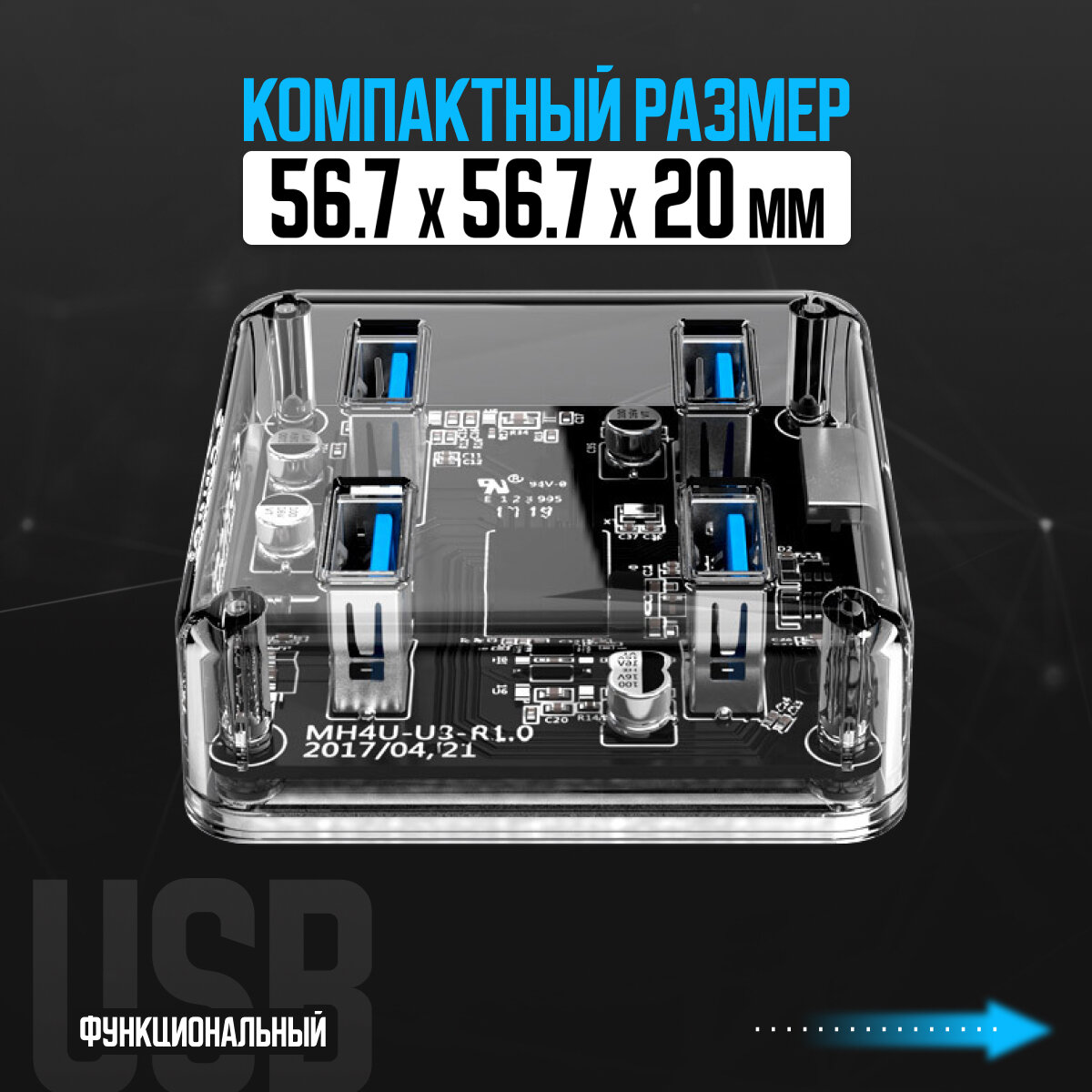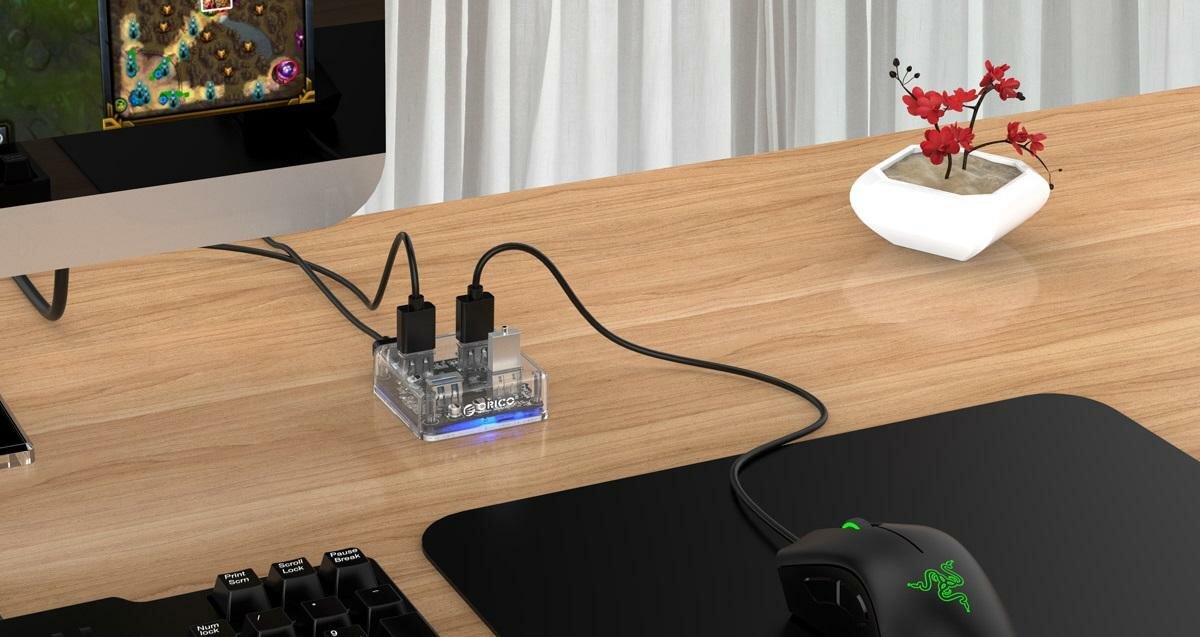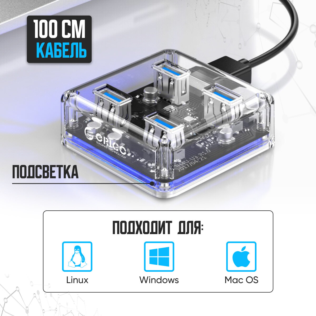 USB-концентратор ORICO MH4U-U3 разъемов: 4 100 см прозрачный