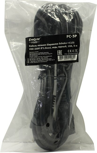 На сегодняшний день товар «Кабель ExeGate Schuko - IEC 320 С13 (EP280652RUS) 3 м черный PC-3P (EP280652RUS)» можно купить с кешбеком в 1 магазине: Яндекс.Маркет