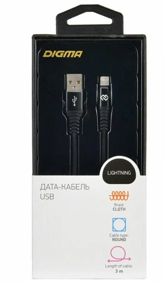 Кабель Digma USB A (m) Lightning (m) 3м - надежная модель!