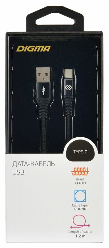 Кабель DIGMA USB (m)-USB Type-C (m) 1.2 м черный 1080462