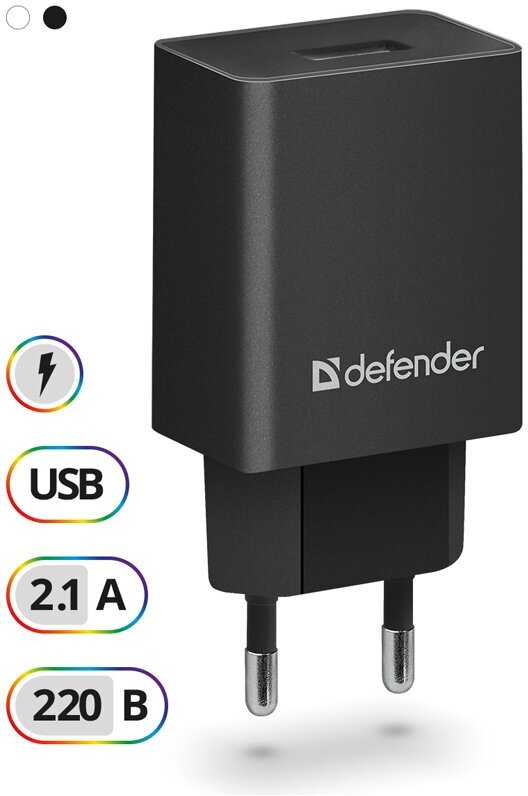 Зарядное устройство сетевое 220 В DEFENDER EPA-10 1 порт USB выходной ток 21 А черное