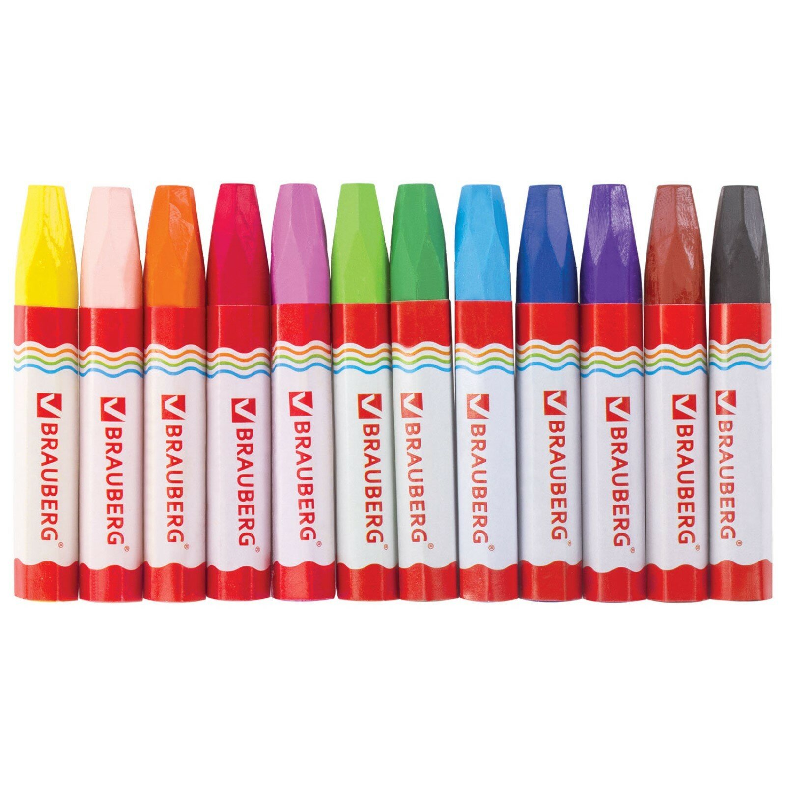 BRAUBERG Восковые мелки утолщенные Академия на масляной основе 12 цветов (227295)