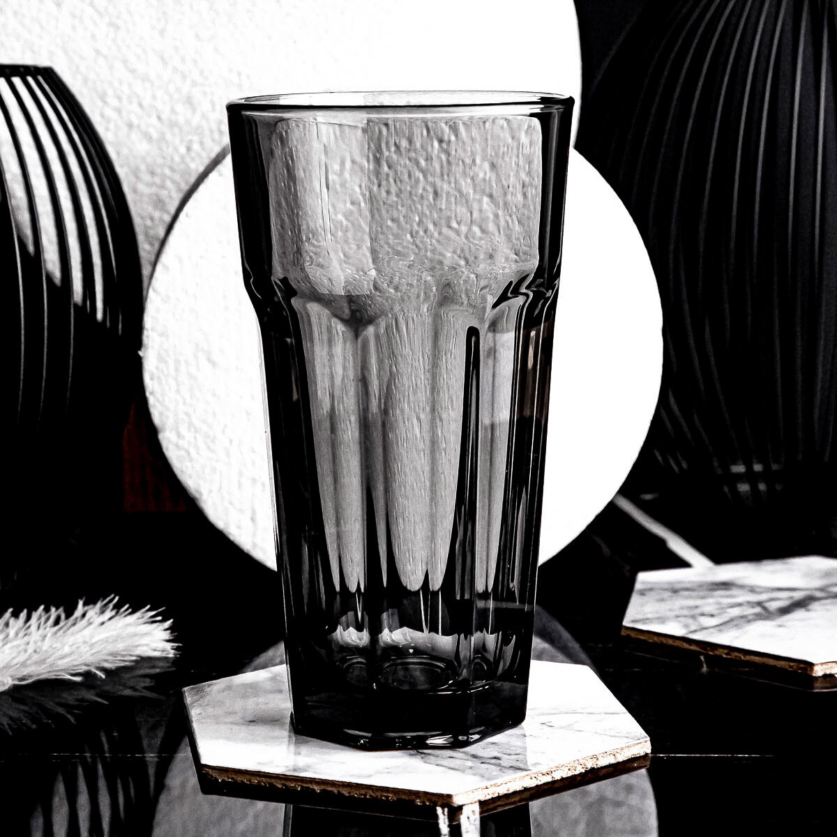 Стеклянные высокие стаканы 365 мл набор 12 шт. бренда Pasabahce. Универсальные стаканы для коктейлей, прохладительных напитков, содовой, соков или минеральной воды. Изготовлено из натрий-кальций-силикатного стекла, свинец в технологии не применяется. Серые стаканы - технология окрашивания в массе. Высота 148 мм, диаметр верха 80 мм, дна 54 мм. Высокие стаканы обладают интересным дизайном, выполнены из надежного и крепкого стекла. Благодаря высокому качеству и уникальному дизайну с широкими гранями, посуда будет очень стильно смотреться на столе. Прозрачные стаканы предназначены для интенсивного использования. Благодаря крепкому стеклу, изделия имеют дополнительную защищенность от механических повреждений, увеличивается срок службы стеклянных изделий, также их можно мыть в посудомоечной машине. Комплект стеклянных стаканов будет уместен на любой кухне как дома, в квартире, так и на даче, в саду, в кафе и ресторане. Стеклянная посуда это отличный выбор для полезного и практичного подарка на любой праздник: новый год и Рождество, день рождения и 8 марта, 14 февраля и 23 февраля для мамы и папы, мужа и жены, парня и девушки, молодого человека и подруги, ваших близких людей и родственников, коллег и друзей.